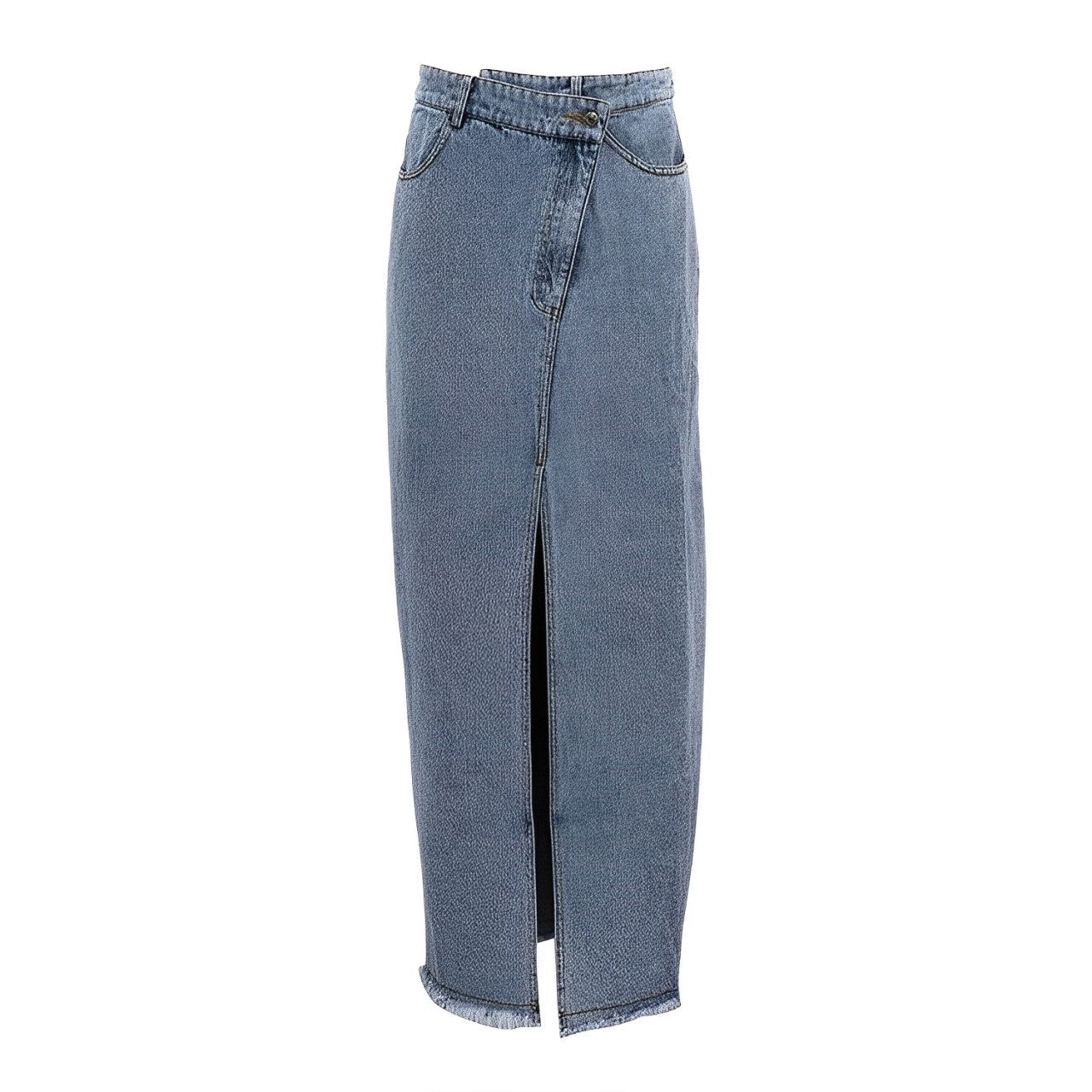 Der Agnieszka Denim-Schlitzrock besticht durch sein zeitloses Design und die moderne Schlitz-Optik. Dieser Rock verleiht jedem Outfit einen eleganten Touch, ideal für lässige oder formelle Anlässe. Das hochwertige Denim-Material sorgt für Komfort und Langlebigkeit, während die A-Linien-Silhouette schmeichelhaft wirkt.