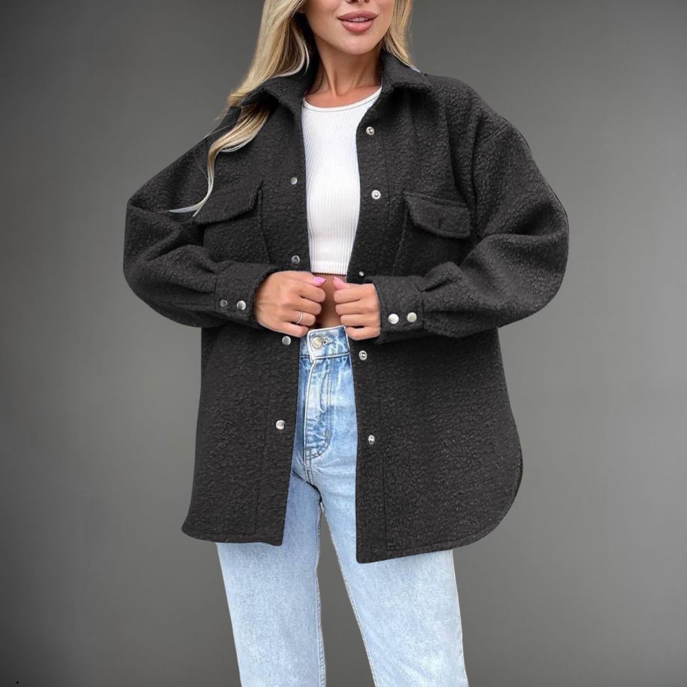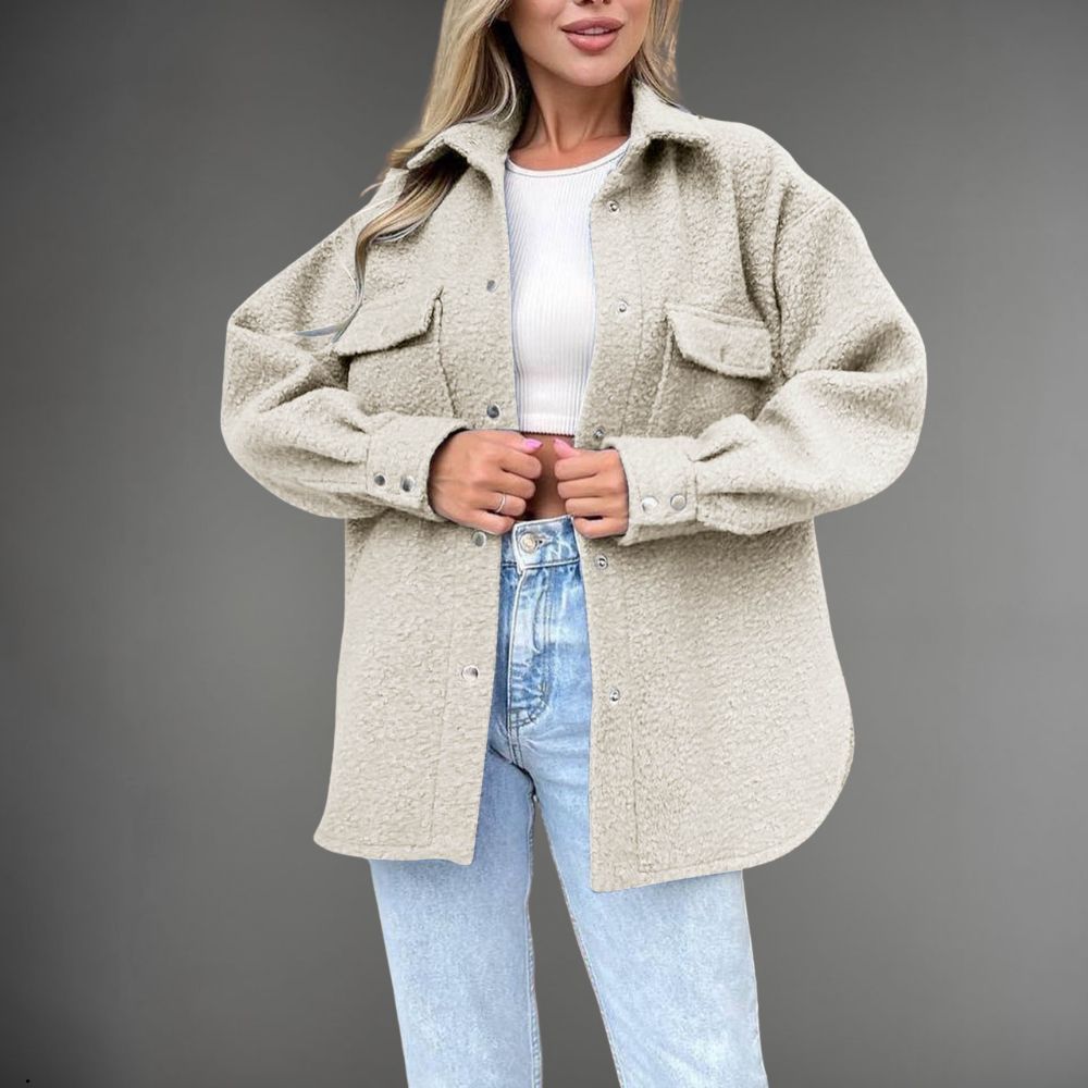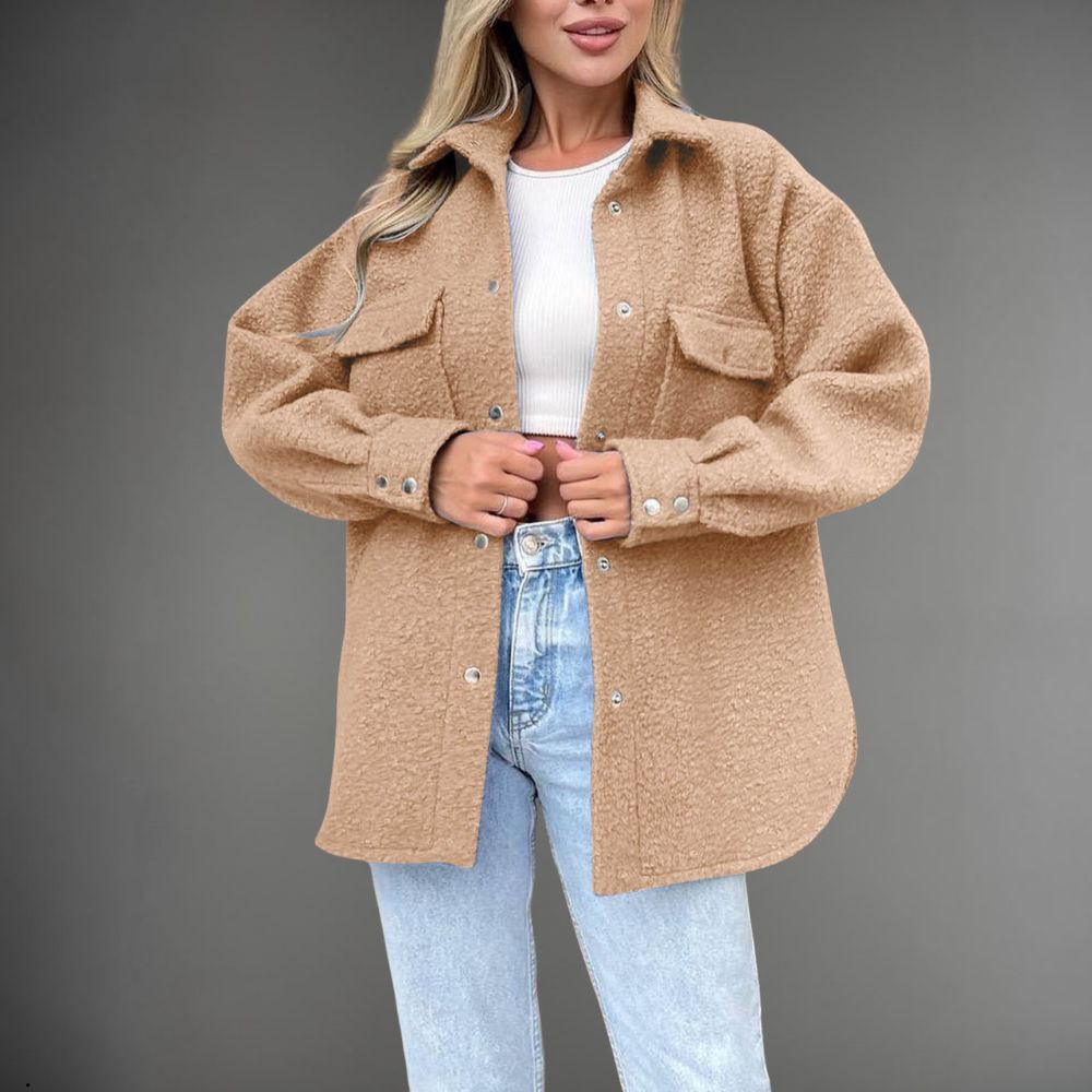 Dieses flauschige Fleece-Hemd ist nicht nur ein echter Hingucker, sondern auch perfekt für kalte Tage. Mit seinem Oversized-Look und der edlen Verarbeitung kombiniert es Stil und Komfort für Frauen, die auch im Winter elegant aussehen möchten.