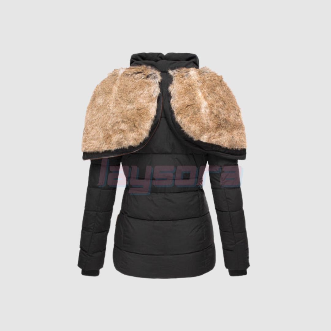 - Kunstpelzkragen und Kapuze: Der Kragen und die Kapuze sind mit Kunstpelz besetzt, was nicht nur für eine stylische Optik sorgt, sondern auch zusätzlichen Schutz vor kaltem Wind bietet. Die Kapuze ist oft verstellbar oder abnehmbar.