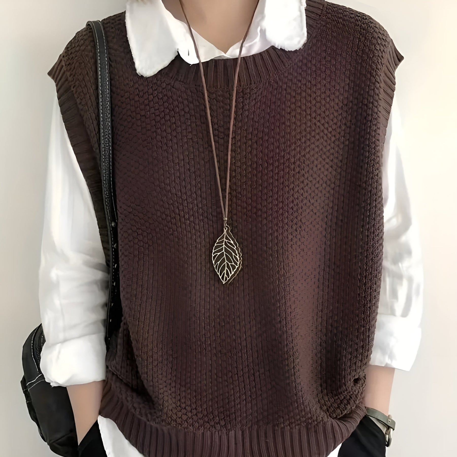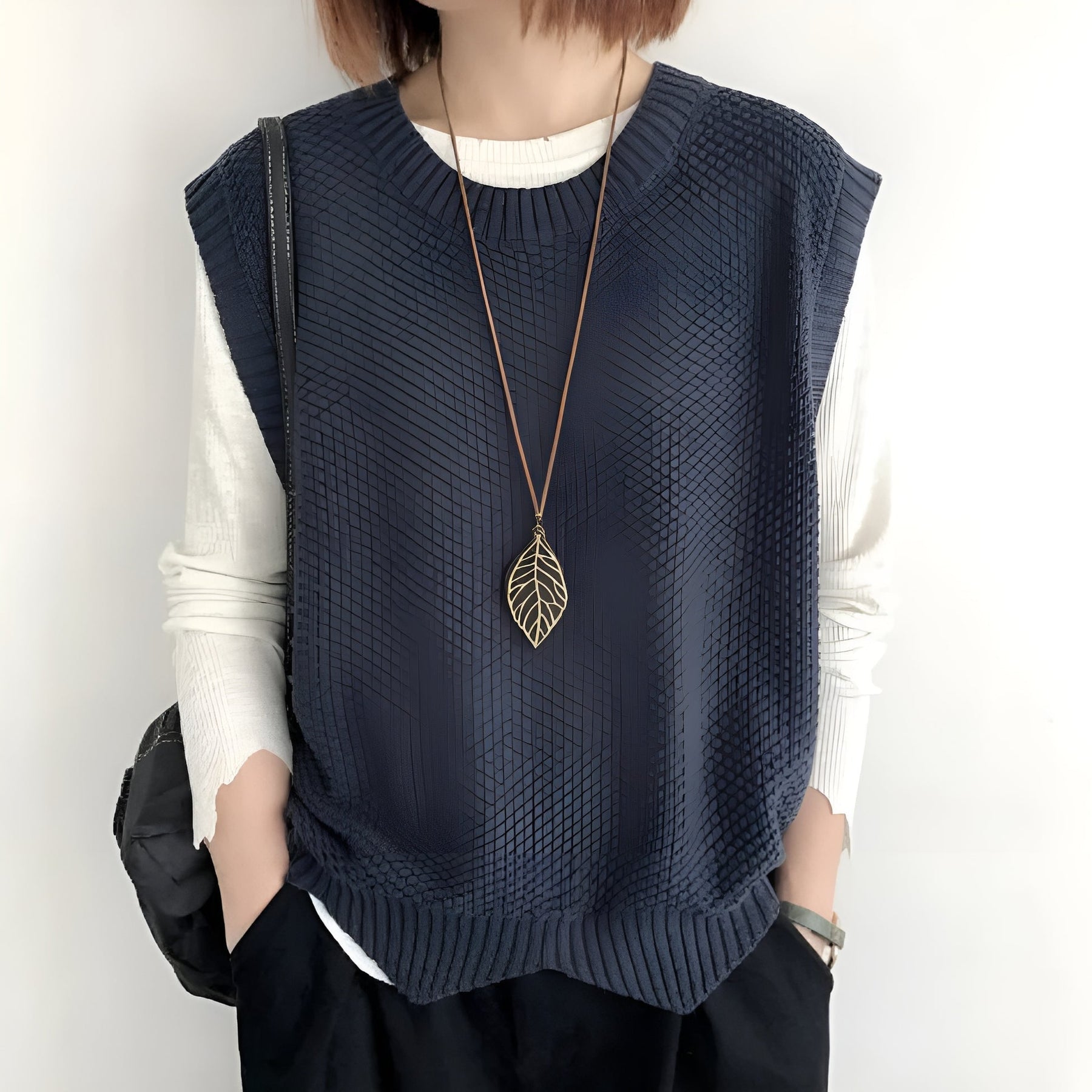- Rippenstrickmuster für Textur und Struktur, was der Weste einen zeitgemäßen und eleganten Look verleiht.
