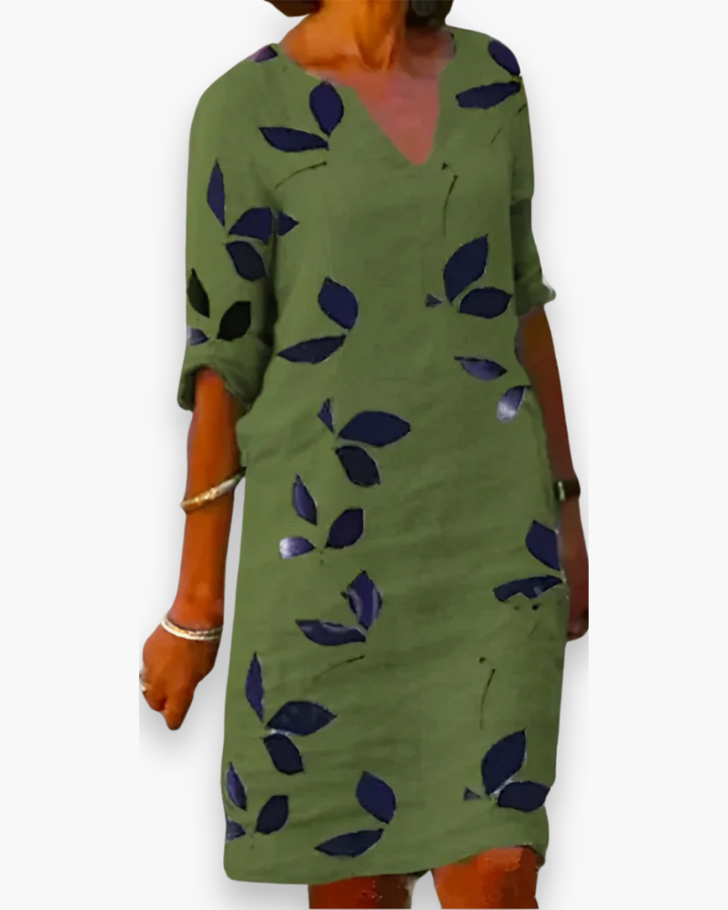 Damen Sommerkleid mit Blätterdruck | Elegantes
