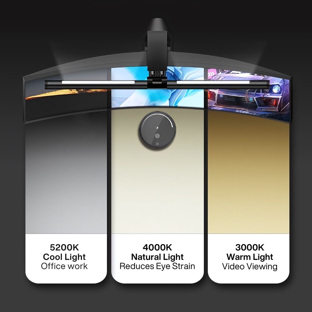 Wir präsentieren die Monitor Lichtleiste: Ihre ultimative Beleuchtungslösung für Gaming- und Büro-Setups. Kompatibel mit flachen und gebogenen Monitoren, bietet sie blendfreies, flimmerfreies LED-Licht, einstellbare Helligkeit und einen breiten Farbbereich (3000K-6500K)—einfache USB-betriebene Installation mit Touch- und Drehreglern für nahtlose Anpassungen. Steigern Sie die Produktivität mit dieser eleganten, langlebigen und vielseitigen Lichtleiste.