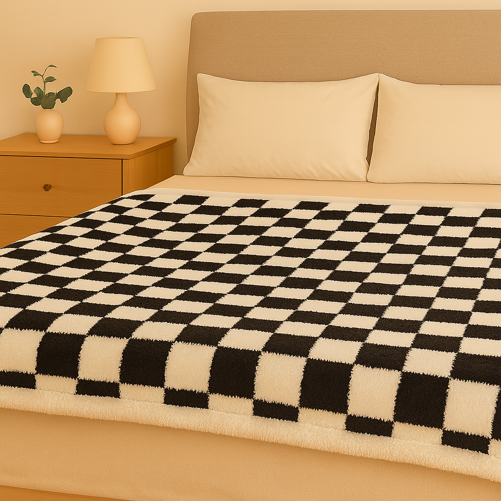Eleganter, schieferkarierter Plüschüberwurf – Wende-Doppelschichtdecke