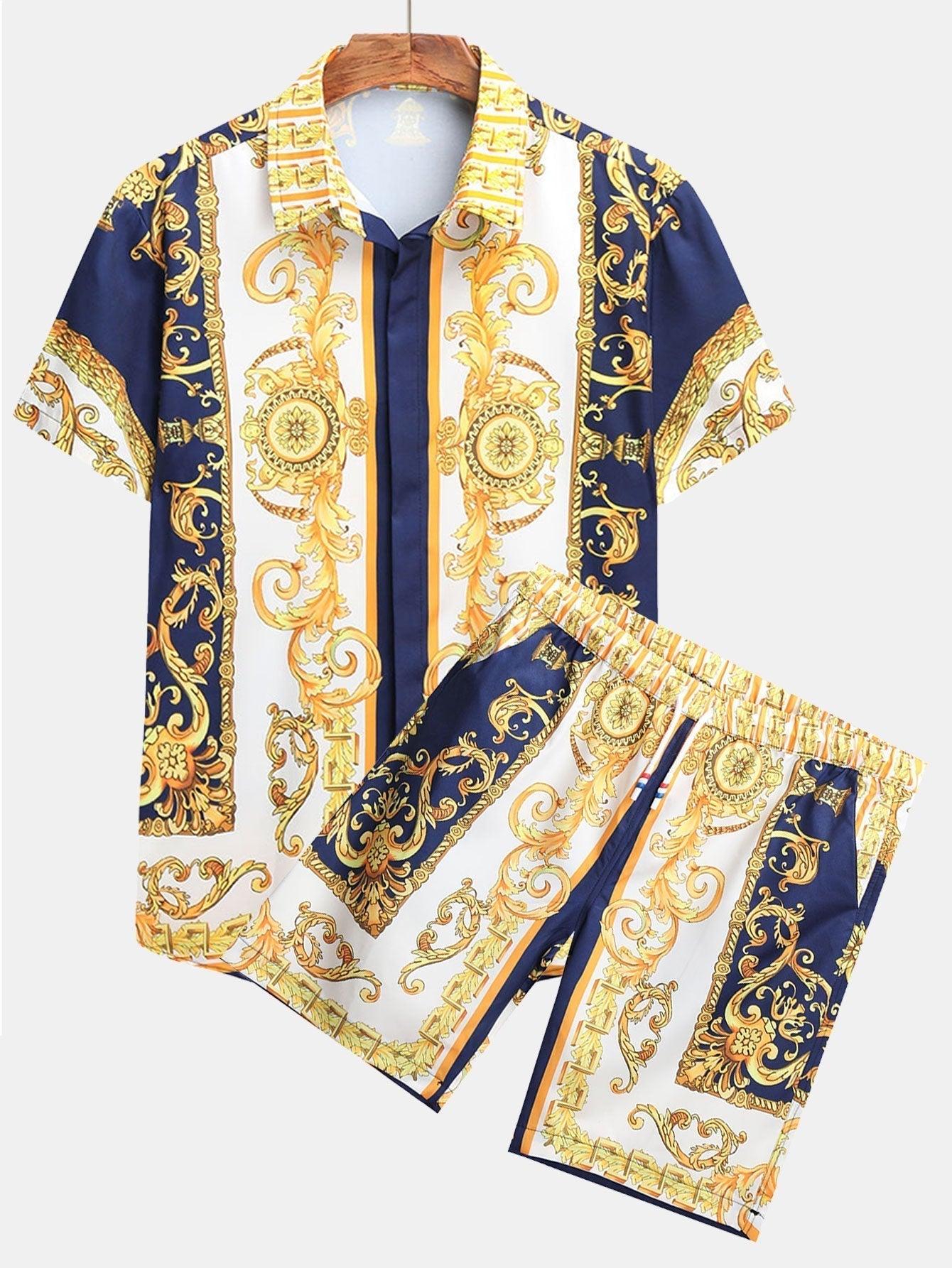 Geknöpftes Hemd und Shorts mit Barockdruck