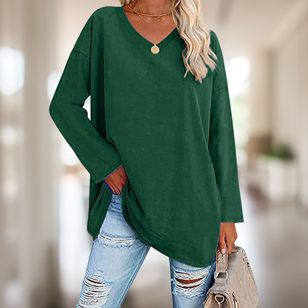 Das Long Loose Shirt mit V-Ausschnitt von Glamora ist ein vielseitiges Kleidungsstück, das Komfort und Raffinesse mühelos miteinander verbindet. Mit seiner schicken und fließenden Silhouette und dem schmeichelhaften V-Ausschnitt eignet sich dieses Shirt sowohl für legere Ausflüge als auch für elegantere Anlässe. Es ist aus hochwertigen Materialien gefertigt, die sich weich und luxuriös auf der Haut anfühlen. Das macht es zu einem zeitlosen Kleidungsstück, das sich nahtlos vom Tag in den Abend verwandeln lässt. Lässige Raffinesse mit dem Long Loose Shirt mit V-Ausschnitt von Glamora.