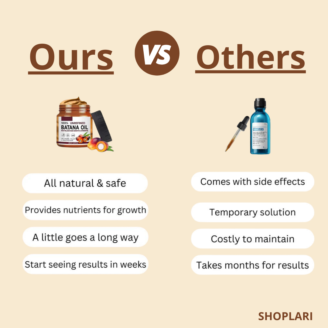 Kämpfen Sie mit Haarausfall? Stellen Sie Ihr Haar und Ihr Selbstvertrauen wieder her mit unserem Bio-Batanaöl! Reich an essenziellen Nährstoffen, revitalisiert und stärkt es Ihr Haar – für dichteres, gesünderes und widerstandsfähigeres Haar.