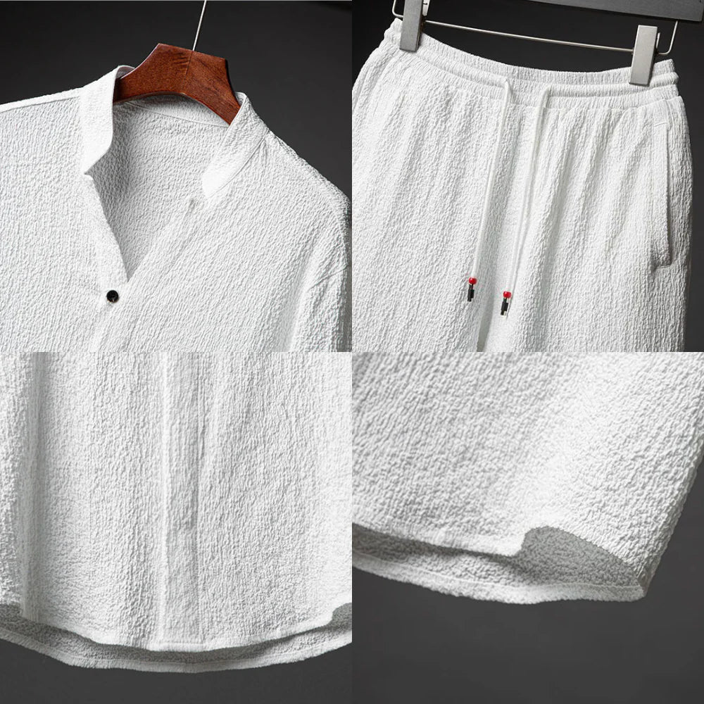 Unser beliebtes Set kombiniert lässige Eleganz mit absolutem Komfort. Das luftige Hemd und die gerade Hose sind perfekt für einen stilvollen, entspannten Look, egal ob für den Alltag oder besondere Anlässe.