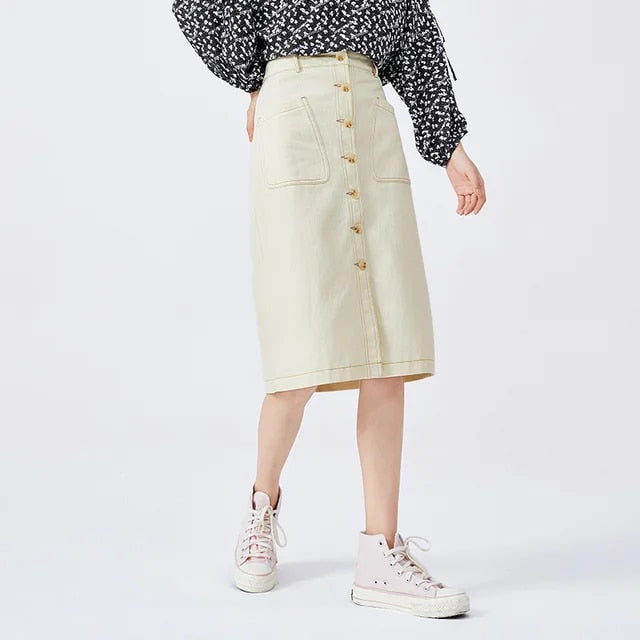 Halflange rok met rij knopen