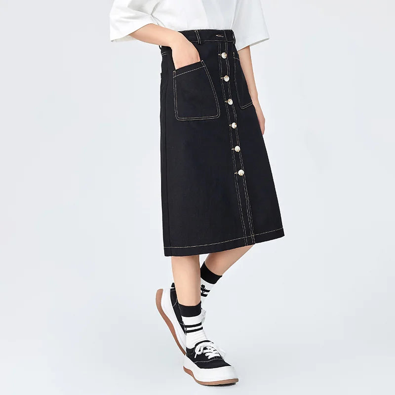 Deze halflange rok wordt gekenmerkt door zijn geraffineerde ontwerp met een betekenisvolle knoopsluiting die hem een exclusieve touch geeft. De strakke lijnen en flatterende pasvorm garanderen dat je er in deze rok altijd elegant uitziet.