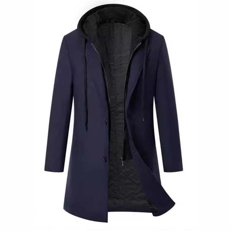Herren eleganter Melton-Mantel mit abnehmbarer Kapuze und praktischen Taschen Aliams
