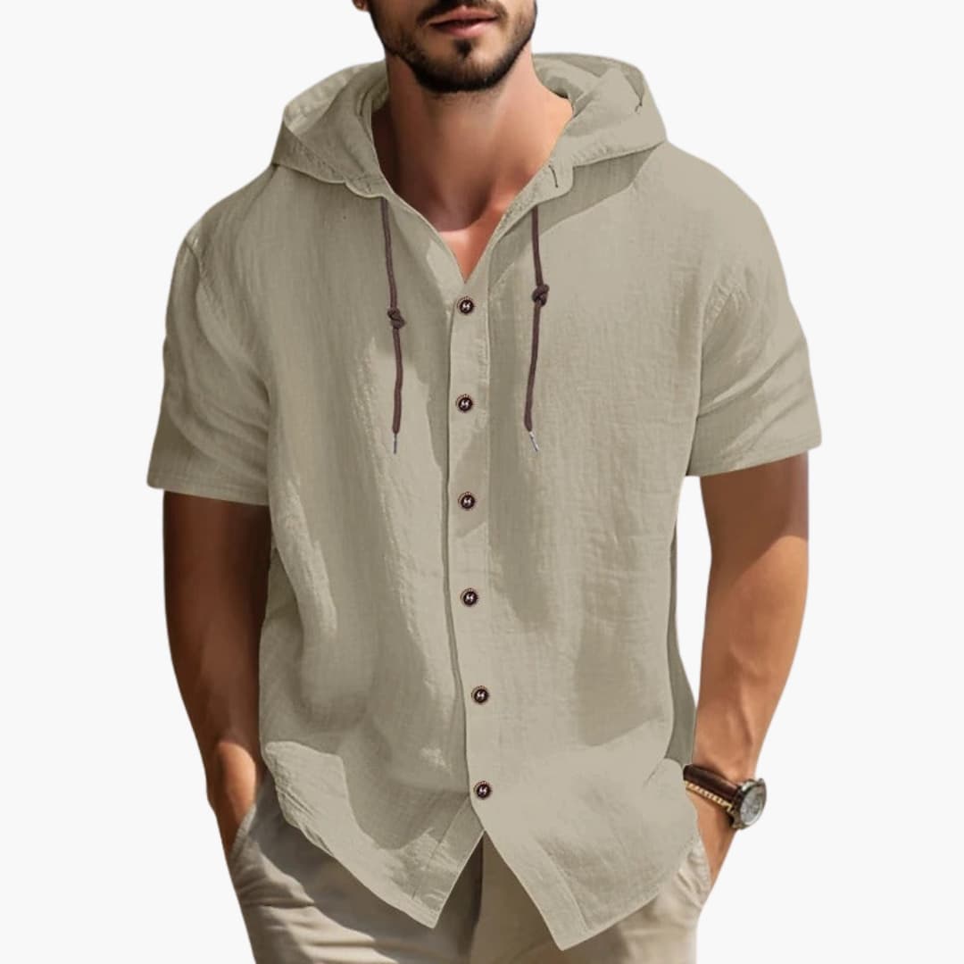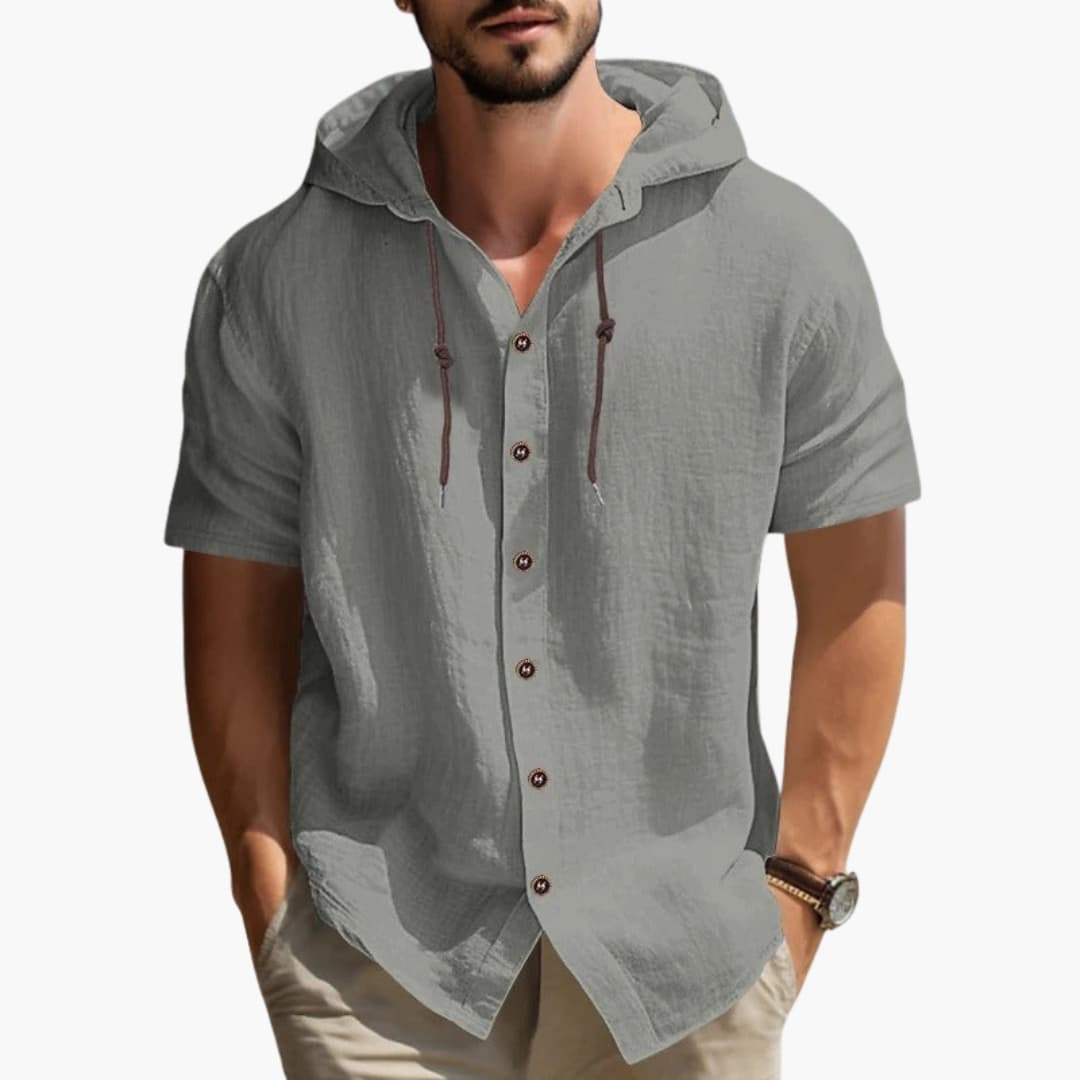 Herren Kapuzen Sommerhemd mit kurzen Ärmeln und Knopfleiste