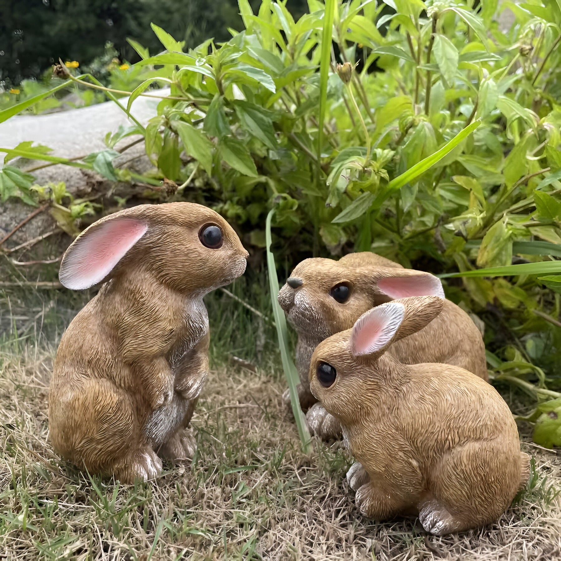 HoppyNest Statue - Dekoratives 3-teiliges Hasen-Gartenstatuen-Set