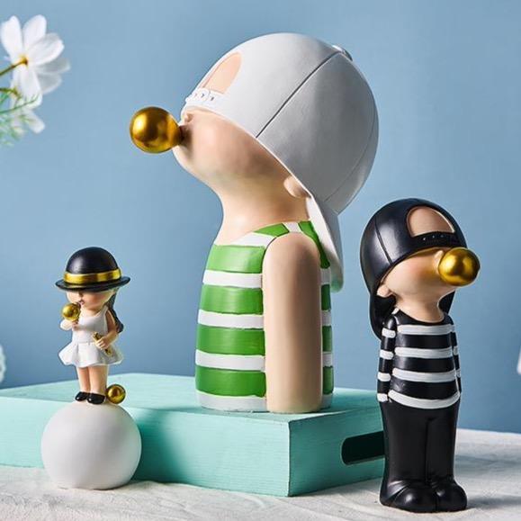 Wenn Sie nach einer langlebigen und niedlichen Skulptur suchen, wird diese Jerome Skulptur Ihre gute Wahl sein. Das einzigartige Design dieses Jungen, der eine Blase bläst, bringt einen Funken in jede Ecke Ihres Zuhauses.