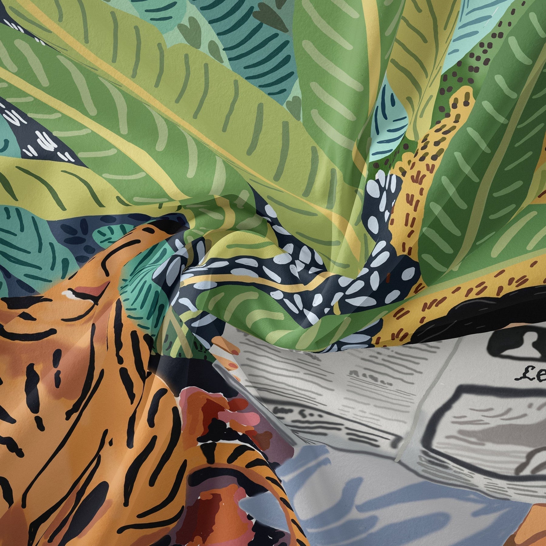 Sie möchten Ihren leeren Wänden Charakter verleihen? Dieser auffällige Wandteppich mit dem Dschungeltiger-Mädchen ist perfekt für alle, die boho-, bohemian- und urban jungle-inspirierte Inneneinrichtungen lieben. Ob im Wohnzimmer, Schlafzimmer oder bei einer Dschungel-Themenveranstaltung – dieses Stück geht über bloße Dekoration hinaus und wird zu einem fesselnden Kunstwerk, das eine wilde und lebendige Energie in Ihren Raum bringt.