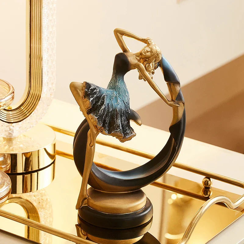 Fügen Sie Ihrem Zuhause mit unserer kreativen tanzenden Mädchen Skulptur einen eleganten Akzent hinzu. Diese meisterhaft gefertigte Skulptur verfügt über filigrane Details, die die Anmut und Schönheit des Tanzes zur Schau stellen. Aus hochwertigen Materialien gefertigt, wird sie jedem Raum Raffinesse verleihen. Perfekt für Kunstliebhaber und Innenarchitektur-Enthusiasten.