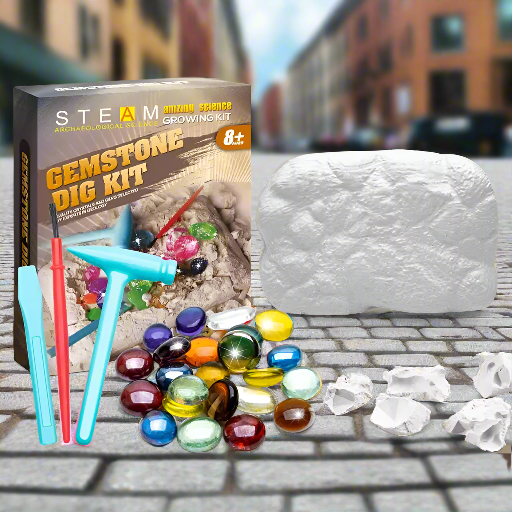 Kinder langweilen sich oft mit den üblichen Spielzeugen, die sie stundenlang an den Bildschirmen kleben lassen. Wenn Sie auf der Suche nach etwas anderem sind, das ihre Fantasie und Neugier anregt, ist das Grabungsset genau das Richtige! Mit diesem praktischen Abenteuerset wird die Spielzeit zu einer spannenden Entdeckungsreise, bei der die Kinder echte Edelsteine ausgraben und gleichzeitig etwas über Archäologie und Wissenschaft lernen können.