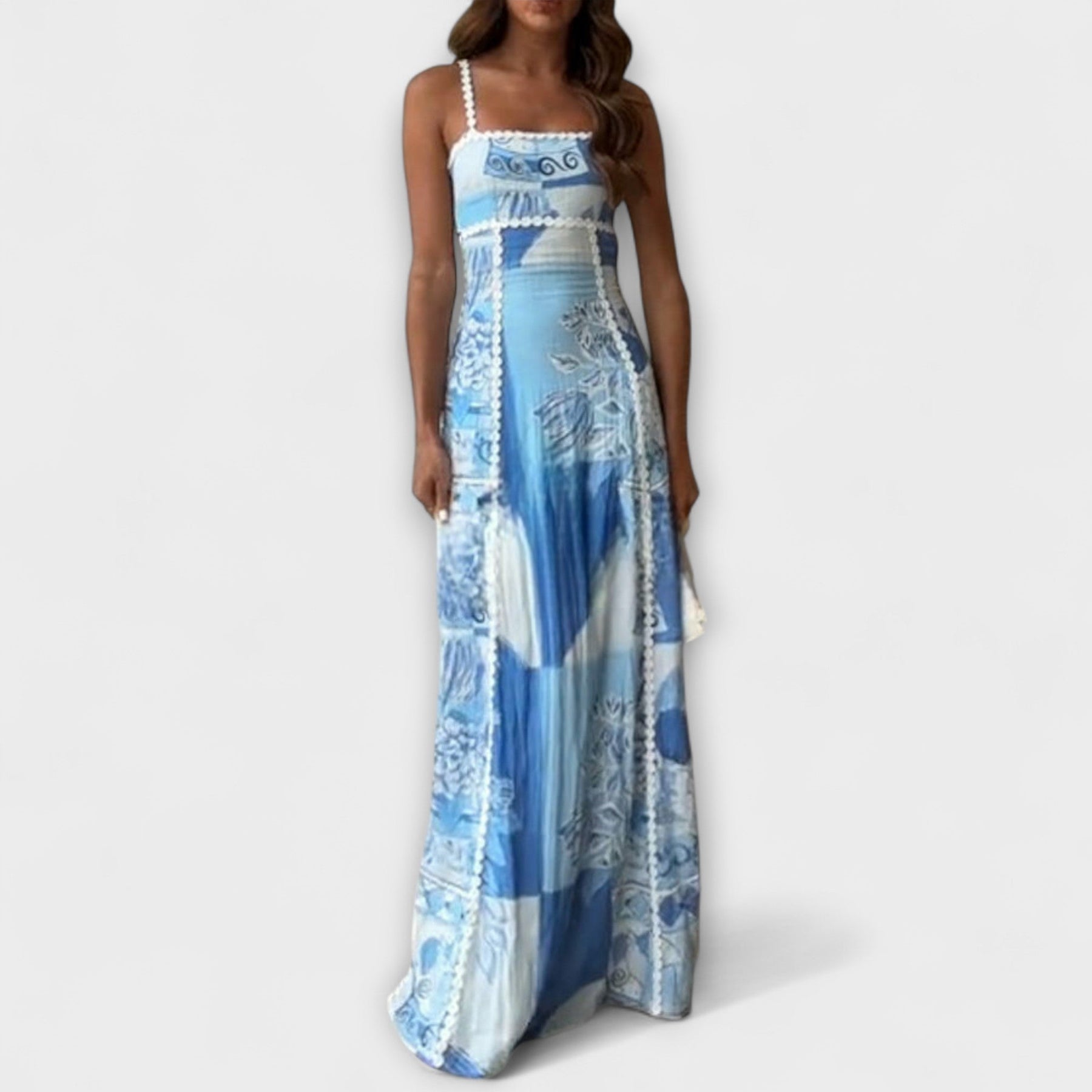 Lirienne – Fließendes Maxikleid mit Trägern und Musterstruktur