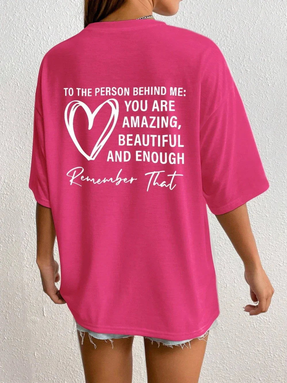 Schlüpfe in Komfort und Selbstbewusstsein mit dem Mara™ T-Shirt – einem herzerwärmenden Essential, das mehr als nur ein Shirt ist. Mit seiner aufmunternden Botschaft und dem mühelos coolen oversized Schnitt lässt dieses Stück dich Selbstliebe und Positivität überall ausdrücken. Egal, ob du zu Hause entspannst, mit Freunden ausgehst oder deinen lässigen Looks eine bedeutungsvolle Note verleihst, das Mara™ ist deine tägliche Erinnerung daran, dass du und alle um dich herum wirklich zählen.