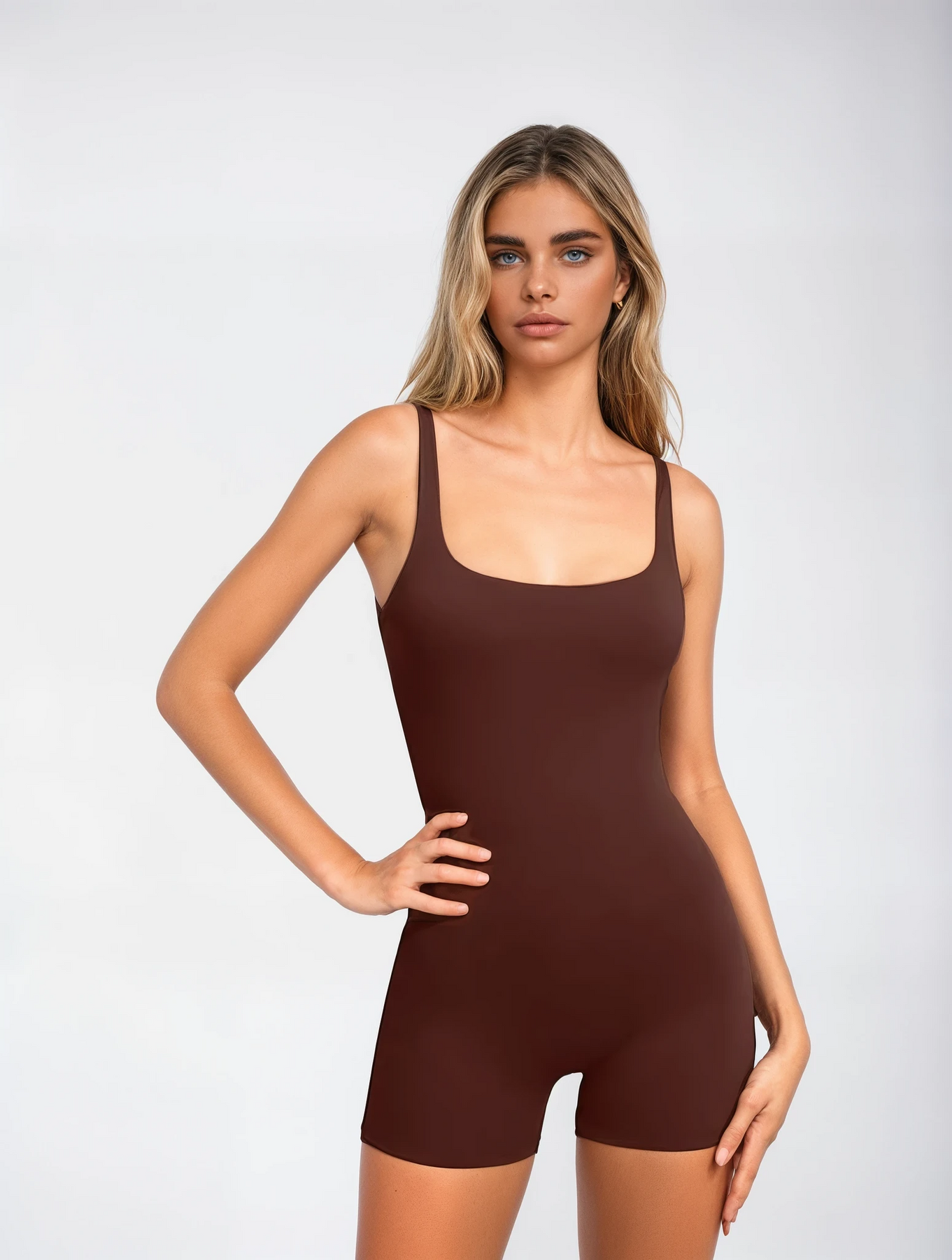 Der Mika Einteiler begeistert mit einem eckigen Ausschnitt, breiten Trägern und einem tiefen Rückenausschnitt. Die körpernahe Passform betont Ihre Silhouette und sorgt für einen stilvollen Auftritt – perfekt für entspannte Stunden, Spaziergänge oder modische Alltagsmomente.