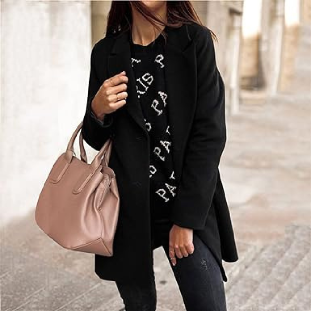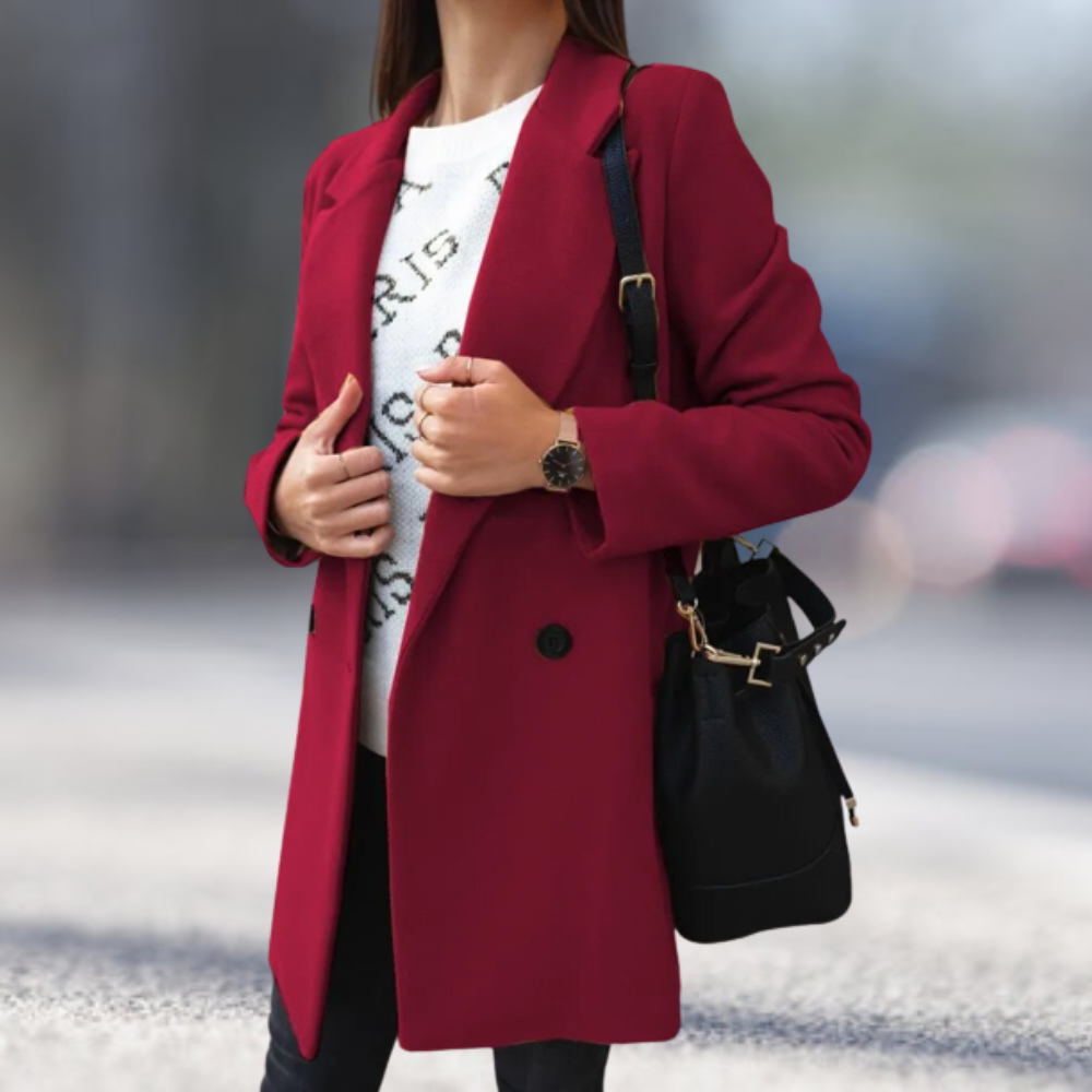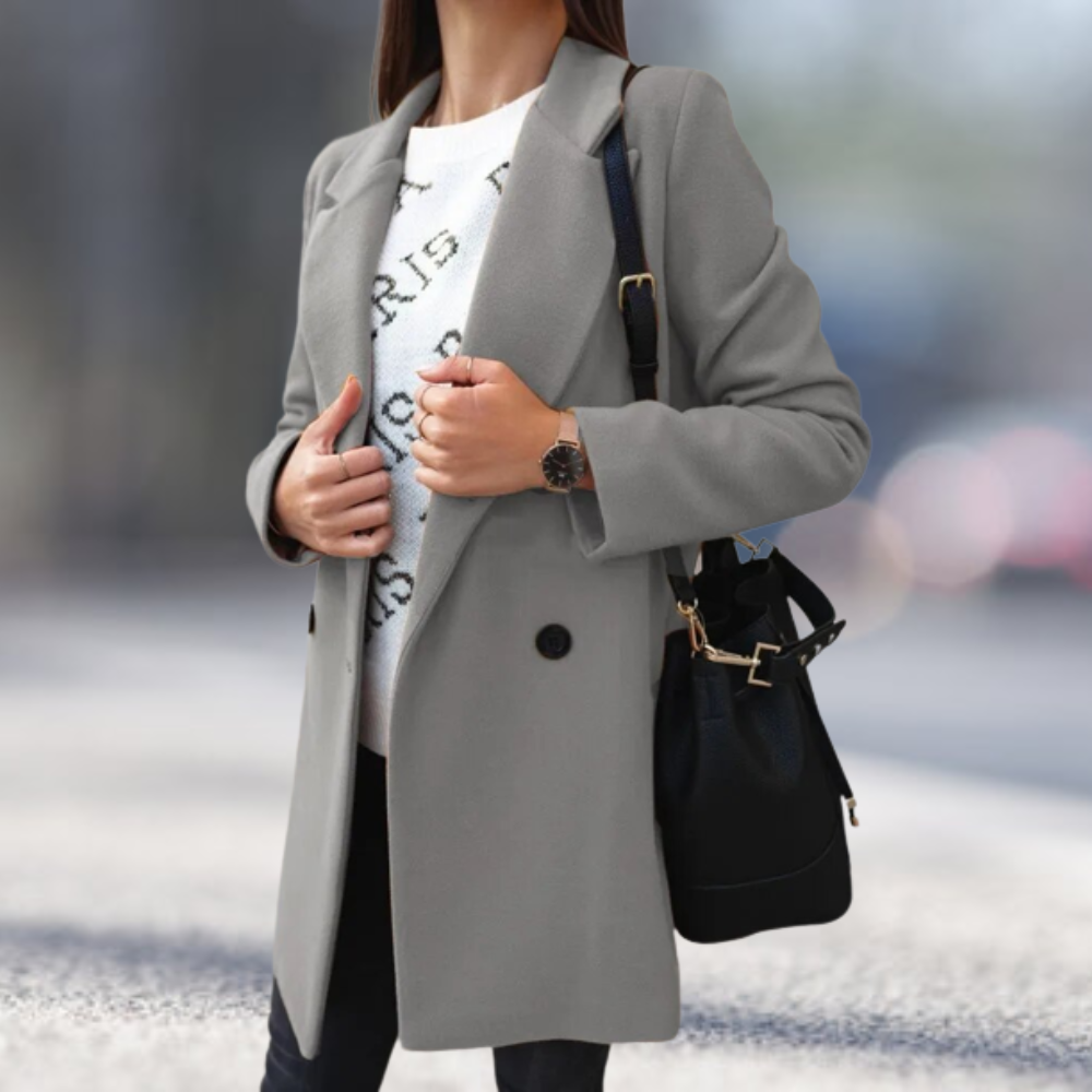 Unser Wintermantel für Damen mit langen Ärmeln und doppeltem Ärmel - eine zeitlose Mischung aus Stil und Wärme, erhältlich in einer Reihe von atemberaubenden Unifarben, ganz nach Ihren Vorlieben.