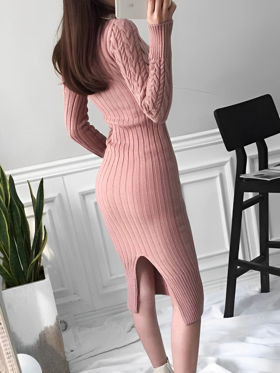 Das Kleid ist aus einem hochwertigen, weichen Strickmaterial gefertigt, das sich angenehm auf der Haut anfühlt und Ihnen ein angenehmes Tragegefühl bietet. Der Wickelverschluss betont Ihre Taille und zaubert eine schöne Silhouette. Das schmale Design sorgt für einen eleganten und modernen Look.