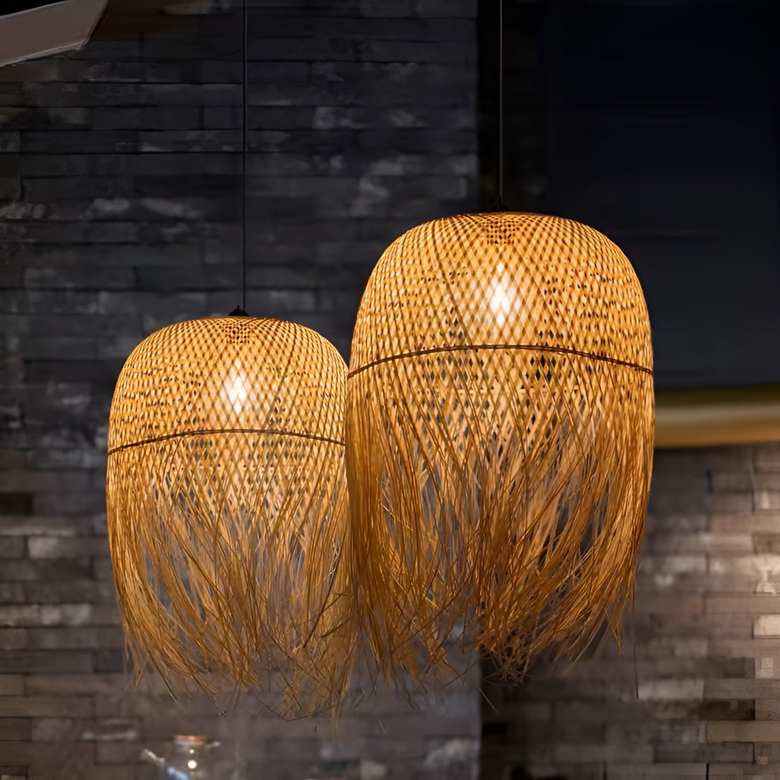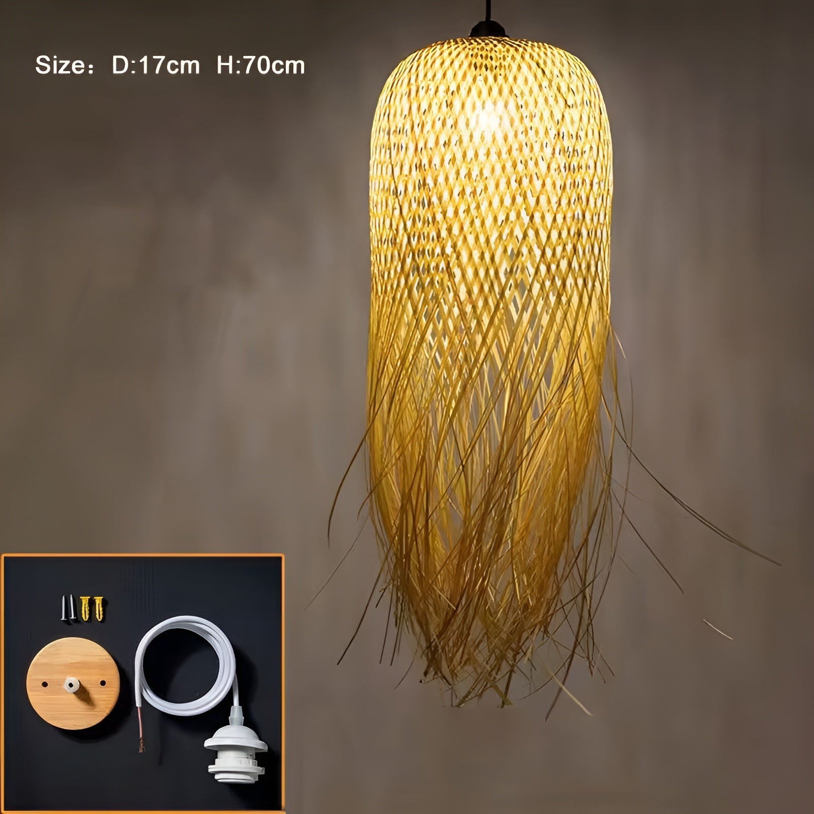 Hergestellt aus umweltfreundlichem Bambus und Rattan, ist diese Leuchte sowohl stilvoll als auch ökologisch verantwortungsbewusst. -