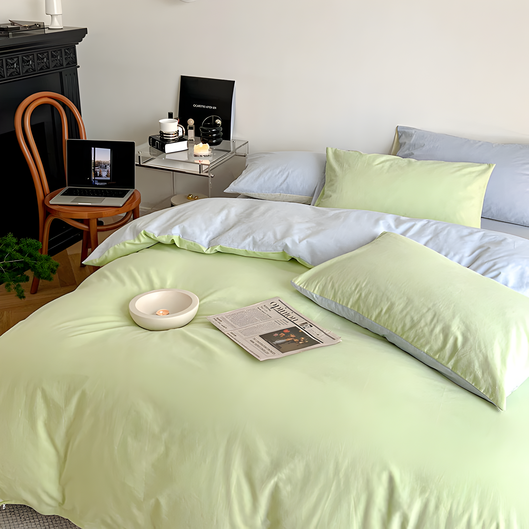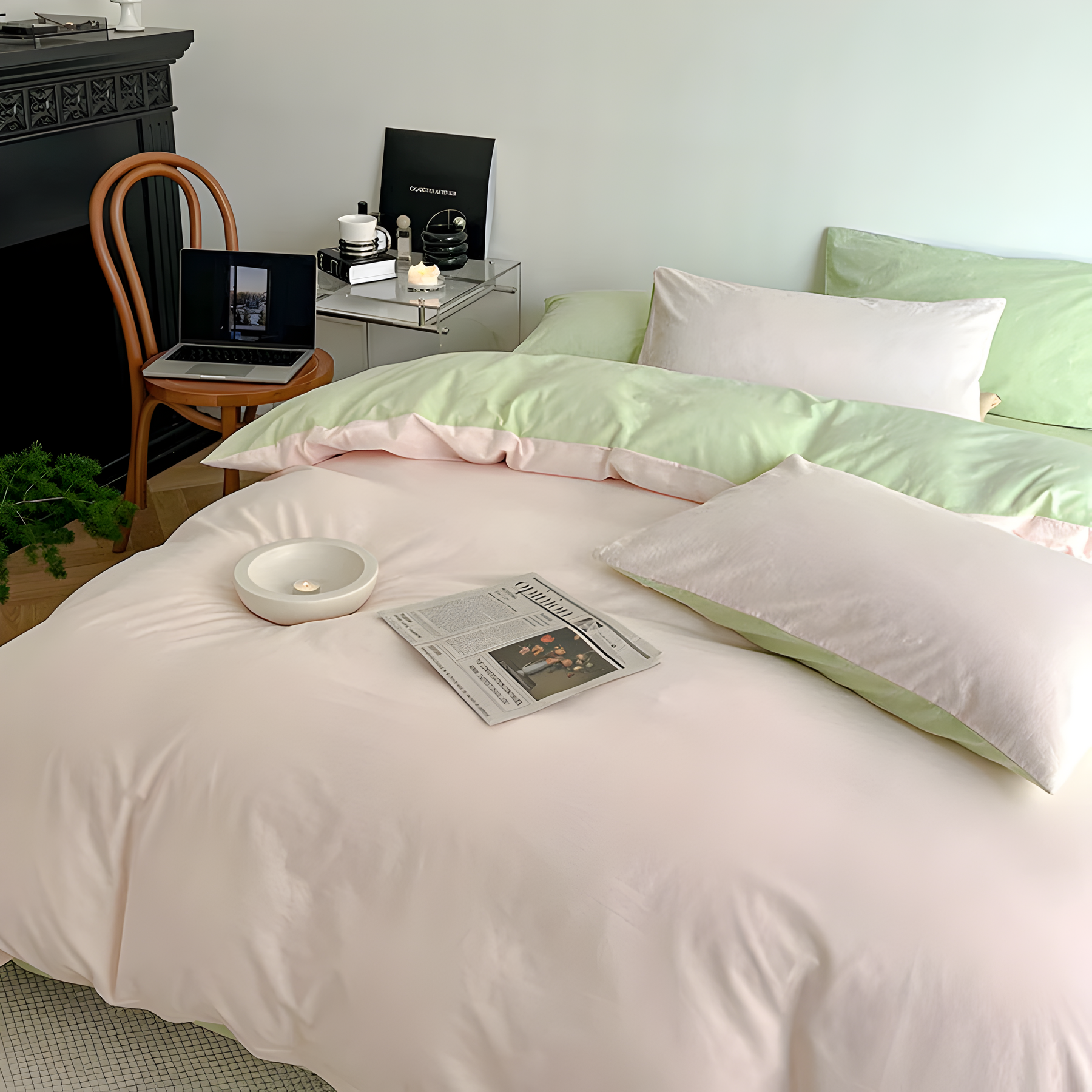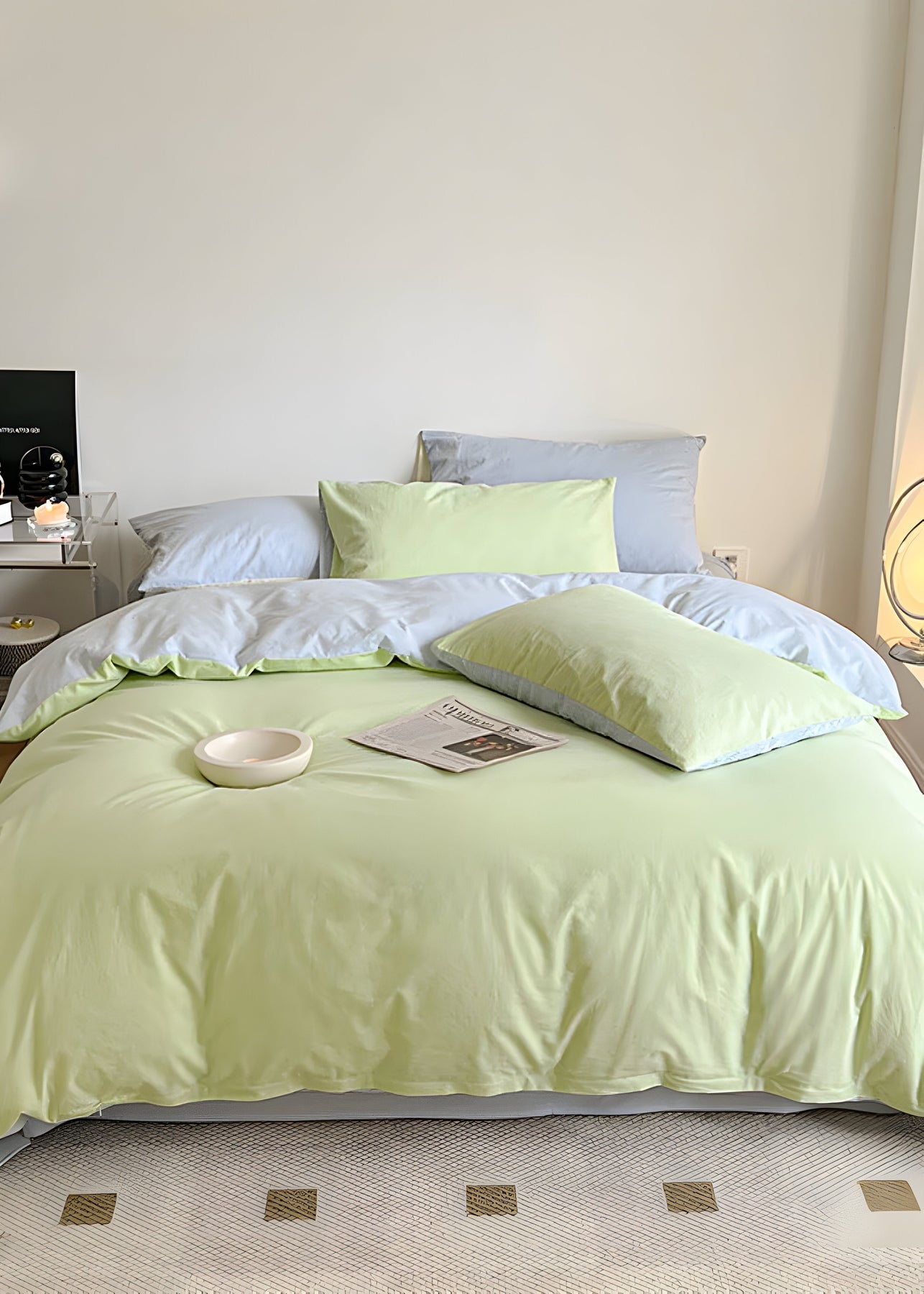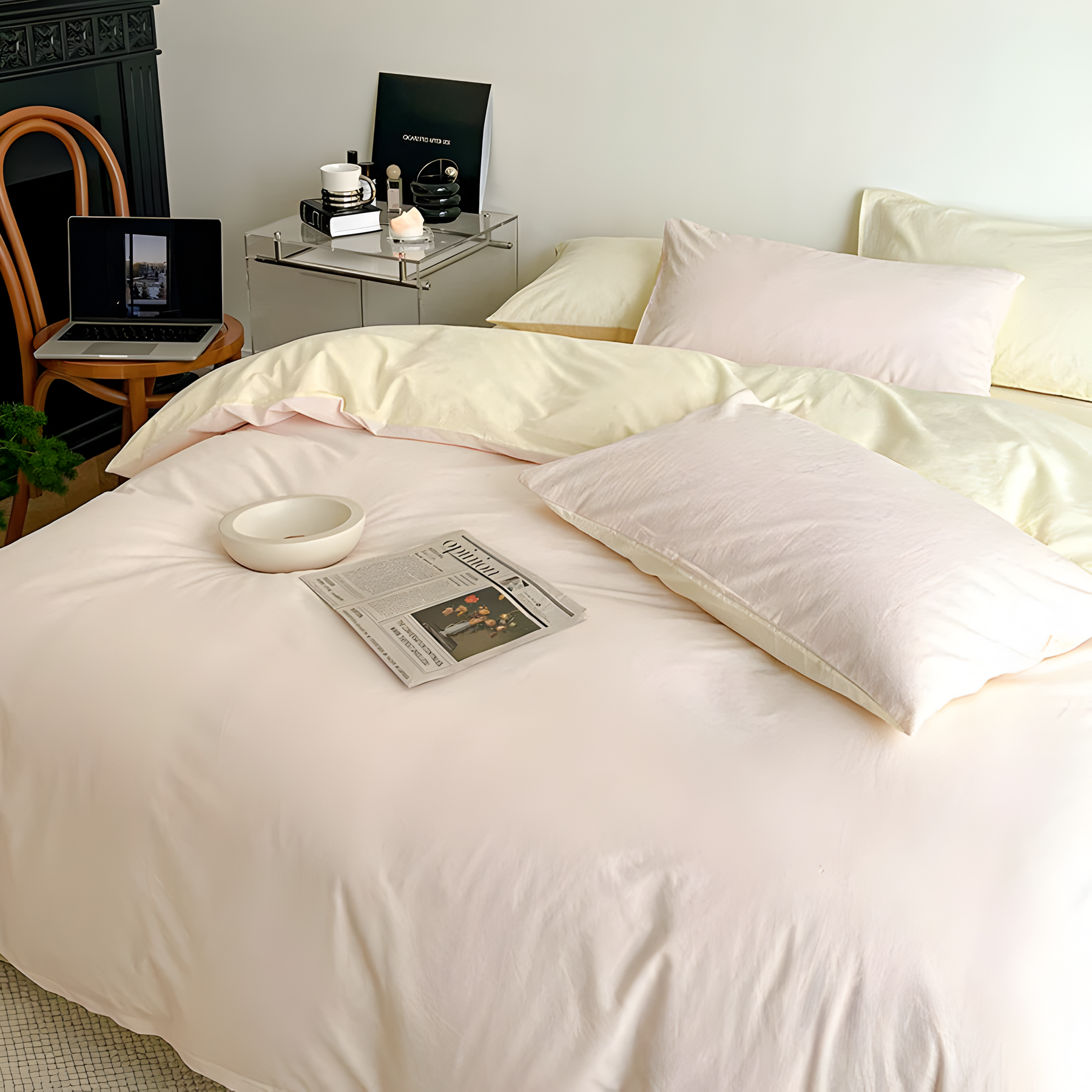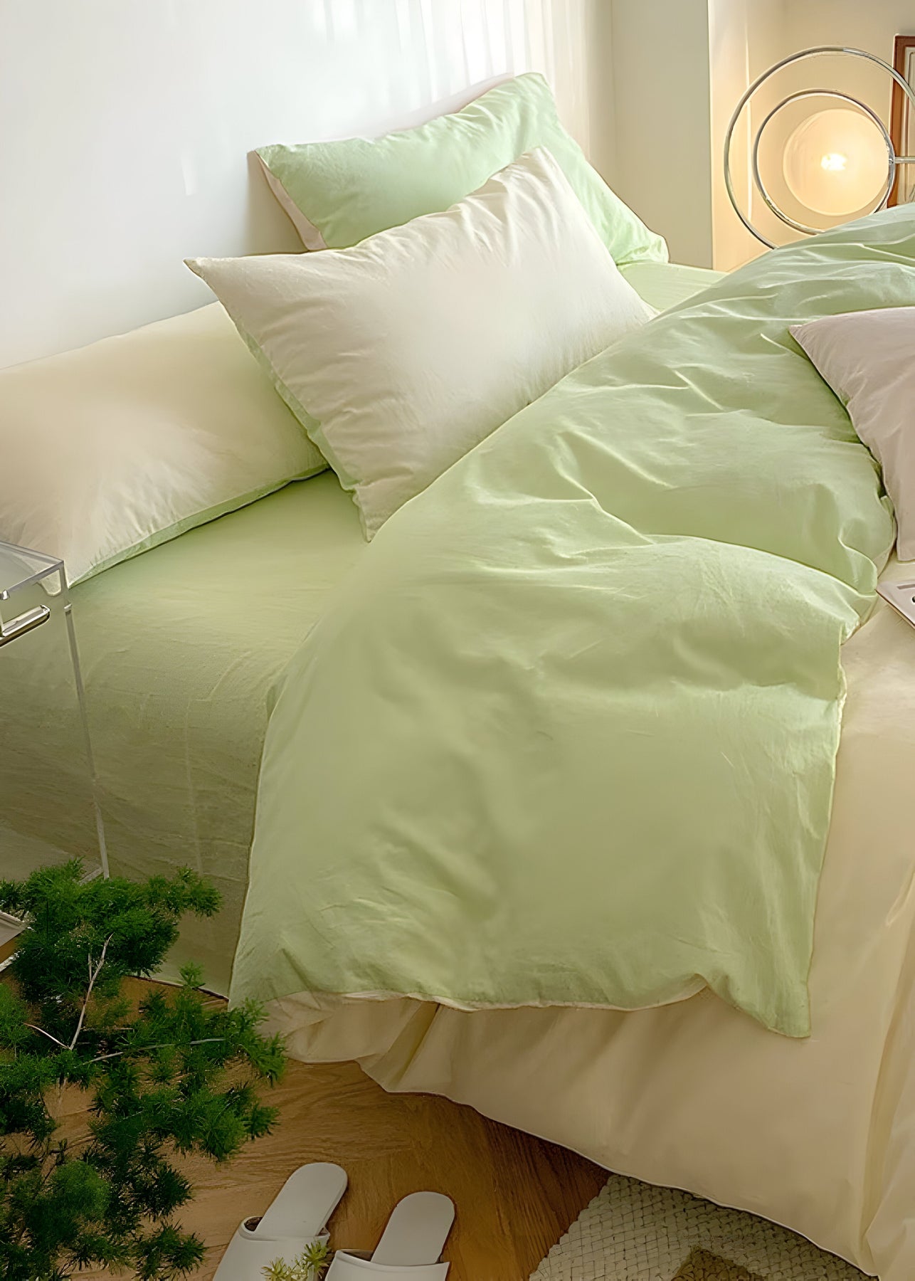 Das SunriseDream Set – Weiches Duo-Farb-Bettwäsche-Set bringt mit seinen zwei harmonisch aufeinander abgestimmten Farben frischen Wind in Ihr Schlafzimmer. Hergestellt aus 100 % hochwertiger Baumwolle, bietet es ein angenehm leichtes und weiches Gefühl auf der Haut. Dank des wendbaren Designs können Sie je nach Stimmung zwischen zwei stilvollen Farbvarianten wechseln und so Ihrem Raum im Handumdrehen ein neues Aussehen verleihen.