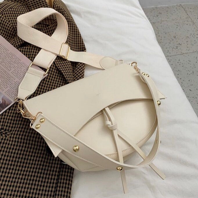 Vintage Damen Schultertasche – Vegan Leder mit Pouch & Canvas Gurt