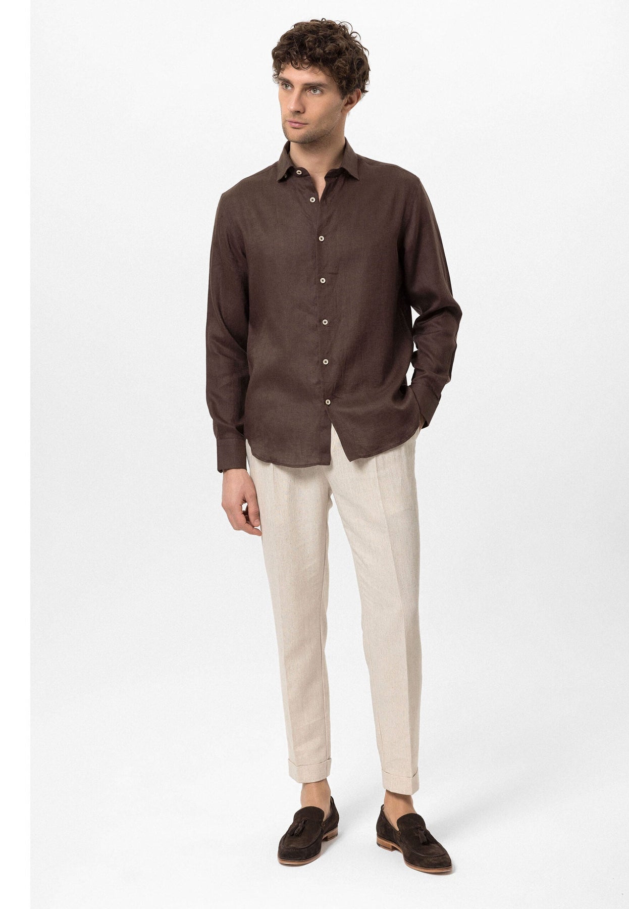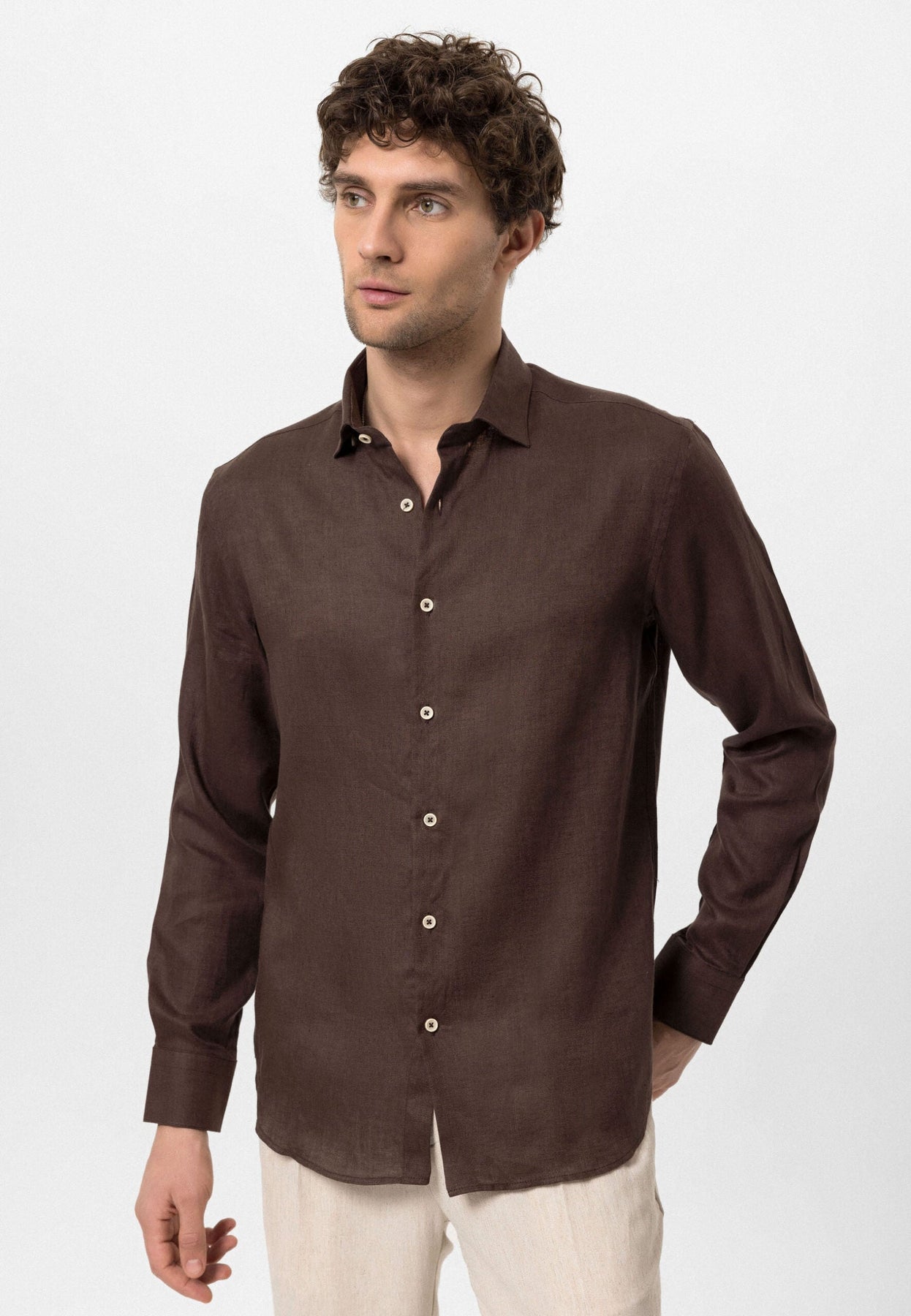 ANTIOCH | 100 % Leinenhemd – Dunkelbraun