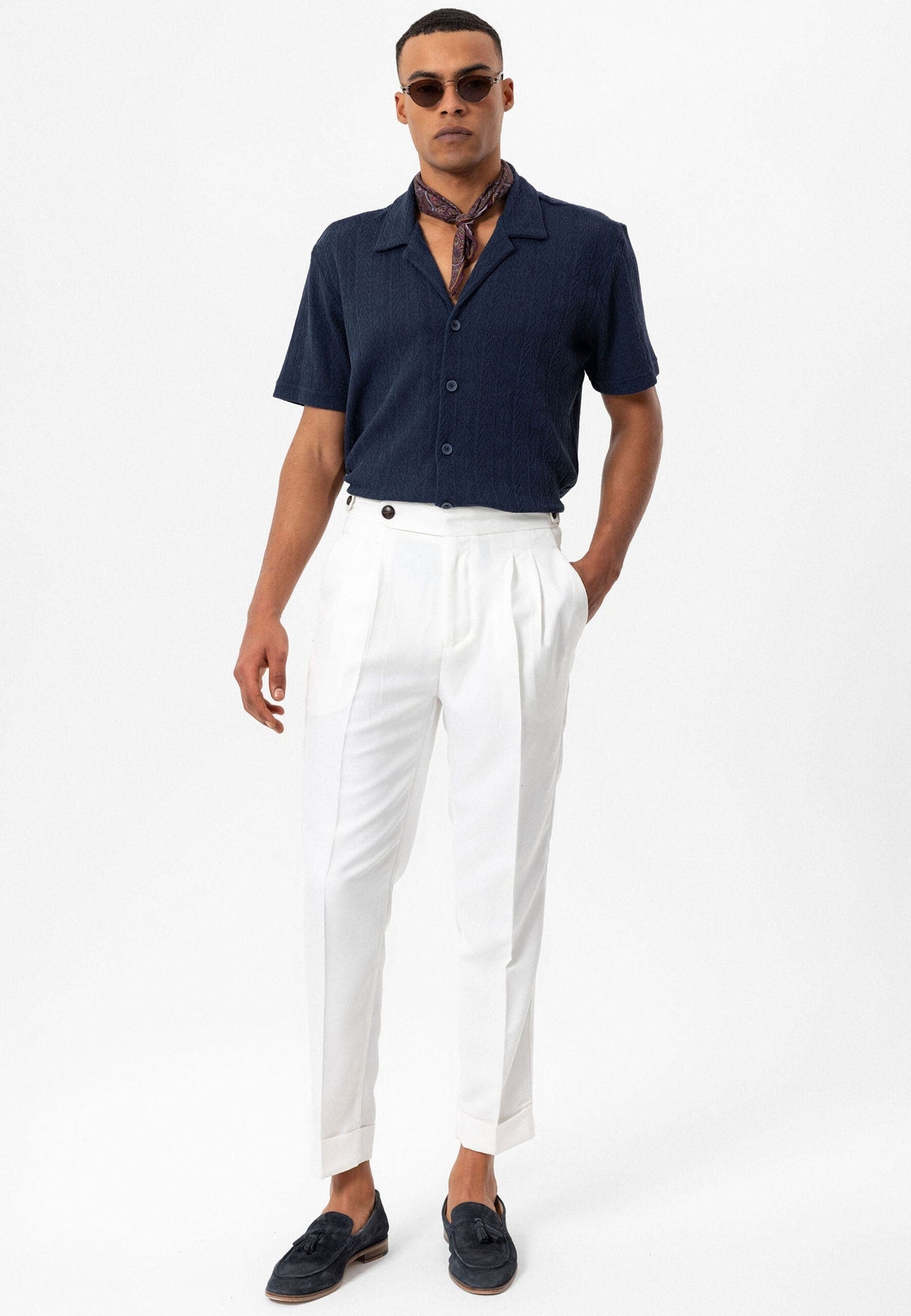 Dieses kurzärmelige Hemd setzt mit seinem kühnen Look und seiner raffinierten Ästhetik ein Statement. Entworfen für sowohl Komfort als auch Stil, bietet es eine markante Silhouette und einen hochwertigen Stoff, der den luxuriösen Look unterstreicht. Die Knopfleiste verleiht eine klassische Note, wodurch es eine vielseitige Wahl für sowohl tägliche Stadtoutfits als auch geschäftliche Looks ist. Leicht mit verschiedenen Hosen kombinierbar, hilft dir dieses Hemd, einen selbstbewussten und stilvollen Look zu kreieren, der dein Erscheinungsbild mühelos auf das nächste Level hebt.