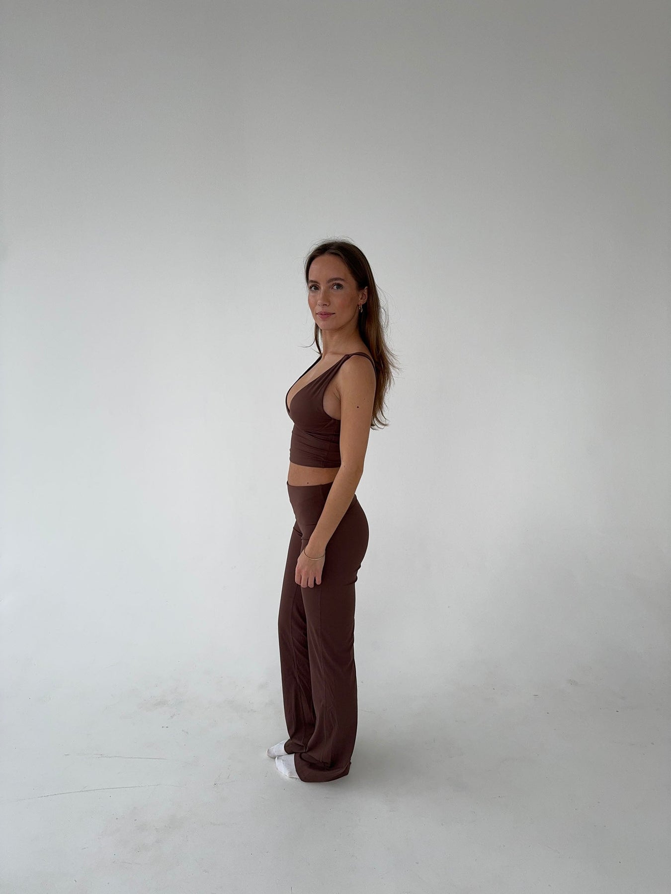 Ausgestellte Damen-Leggings Hohe Taille Braun - Stretch & Komfort