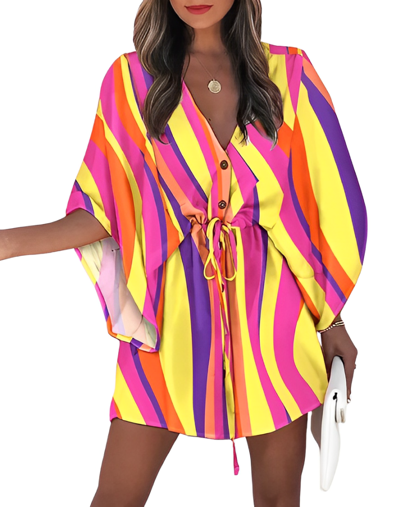 - Sommerliche Leichtigkeit: Der luftige Stoff und das kurze Design sorgen für ein angenehm kühles Tragegefühl an warmen Tagen.