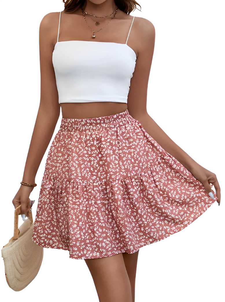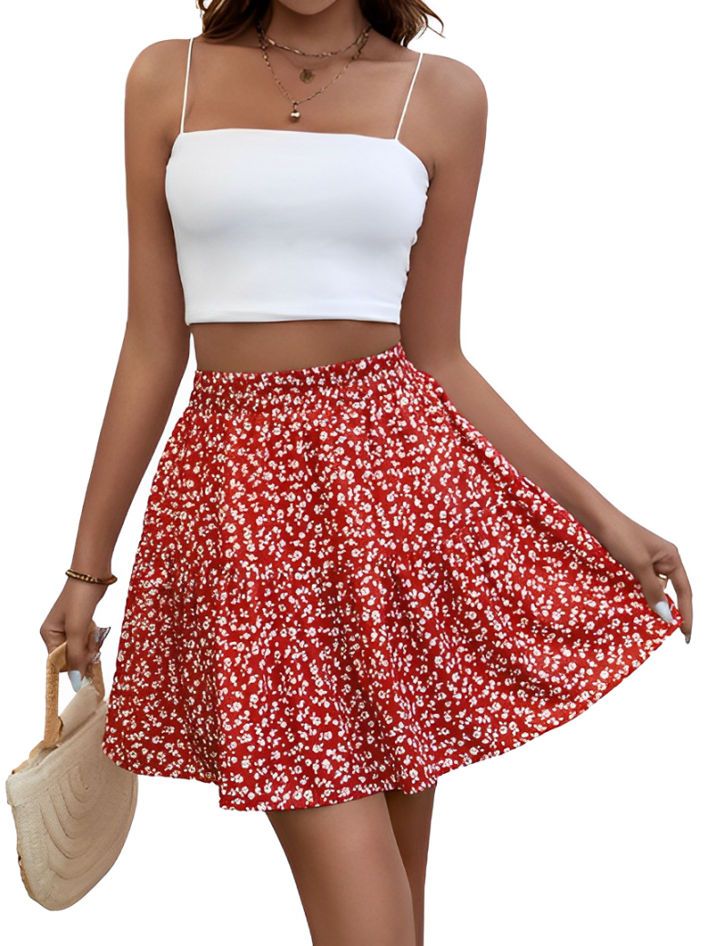 - Romantisches Design: Das Blumenmuster und der verspielte Schnitt verleihen dem Rock einen unwiderstehlichen Charme.
