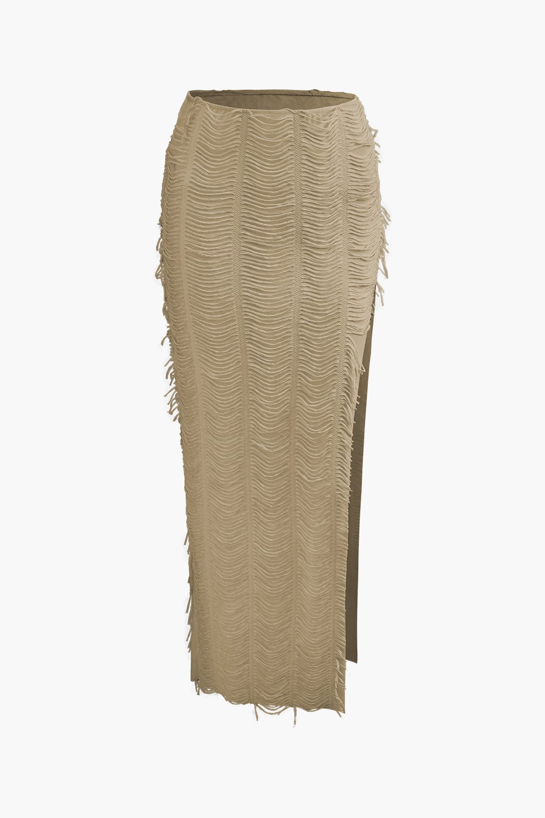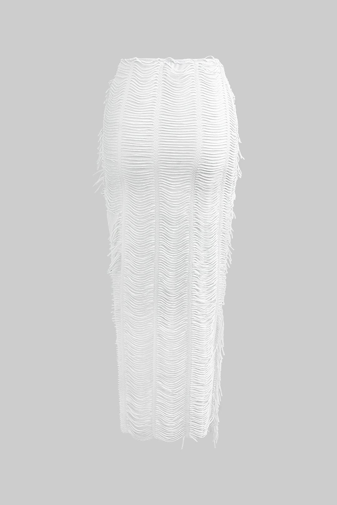 Der Charlene Fransen-Zweiteiler ist ein atemberaubendes Ensemble, das Stil und Dynamik vereint. Das ärmellose Top mit V-Ausschnitt sorgt für eine feminine Note, während der figurbetonte Rock mit seitlichem Schlitz und langen Fransen eine elegante Bewegung verleiht. Perfekt für besondere Anlässe, Partys oder sommerliche Abendveranstaltungen.