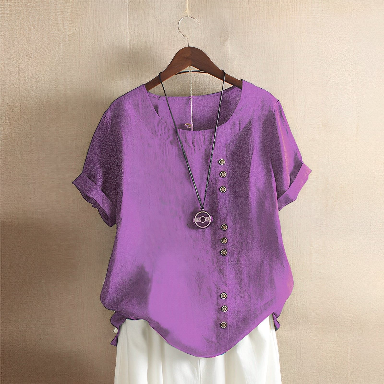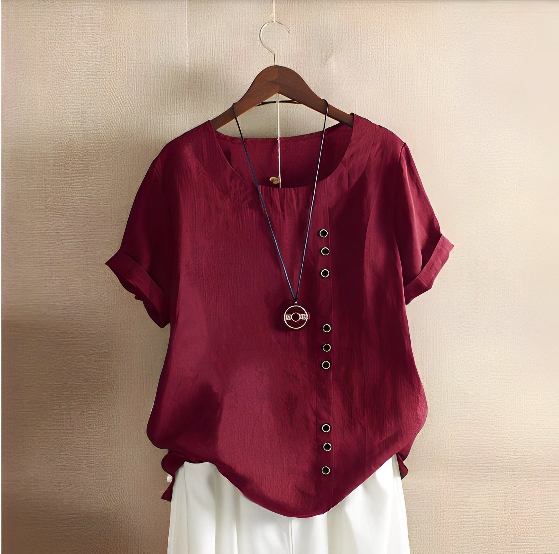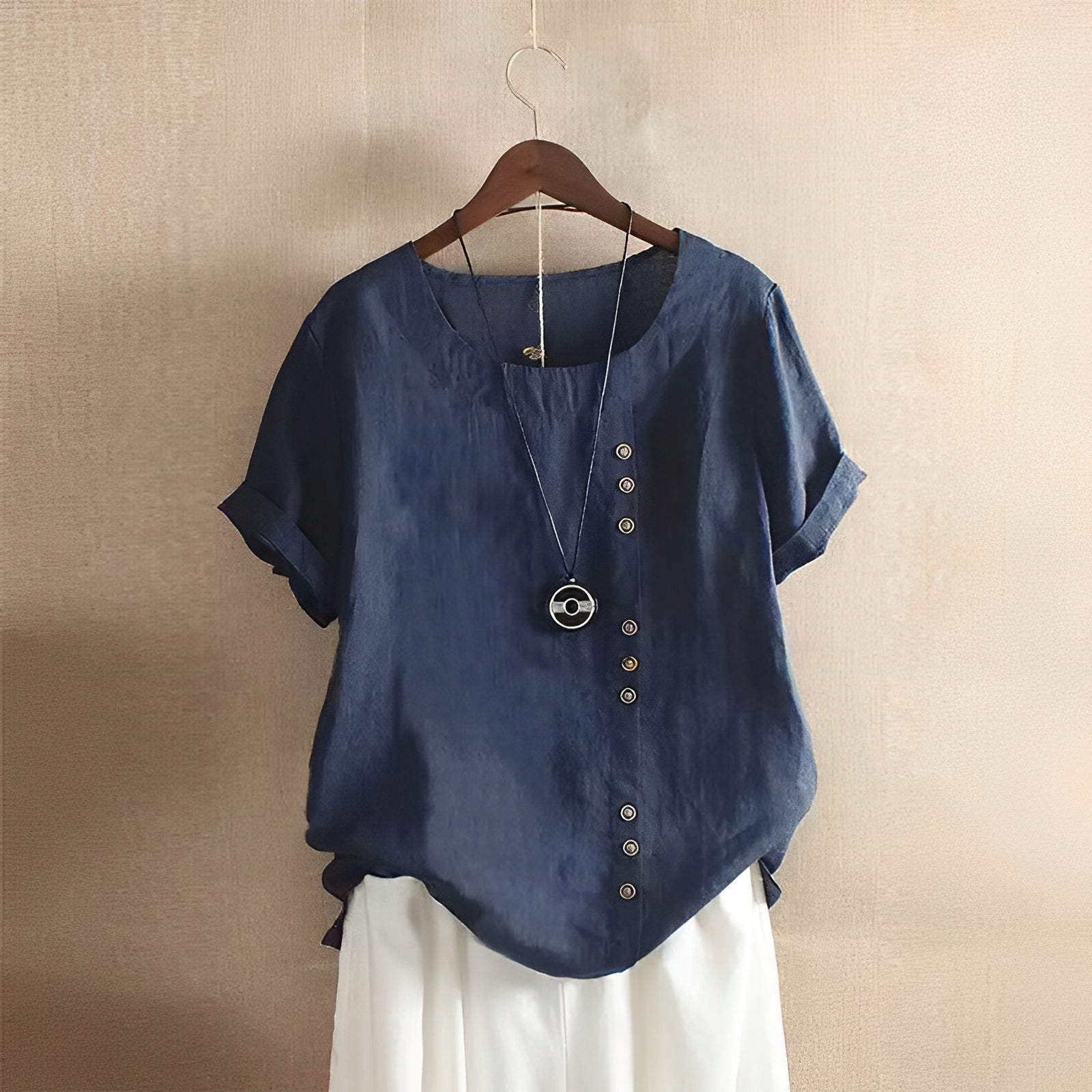 Clare - lockere Kurzarmbluse mit Rundhalsausschnitt
