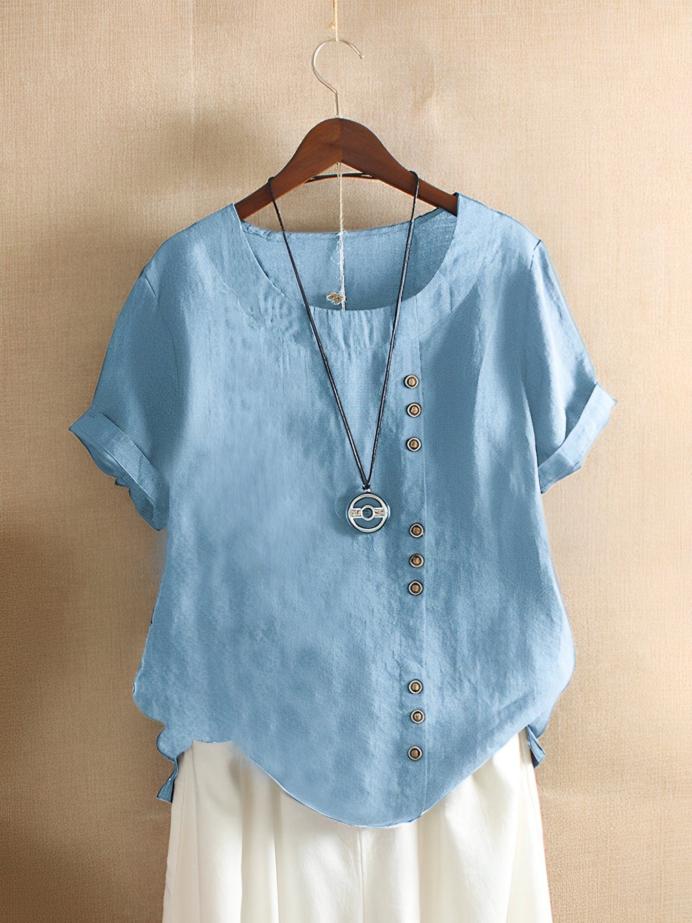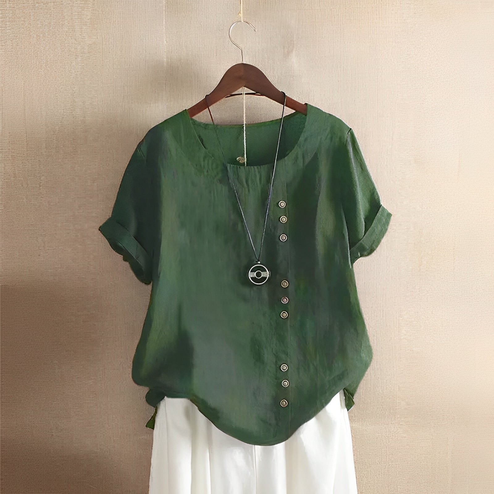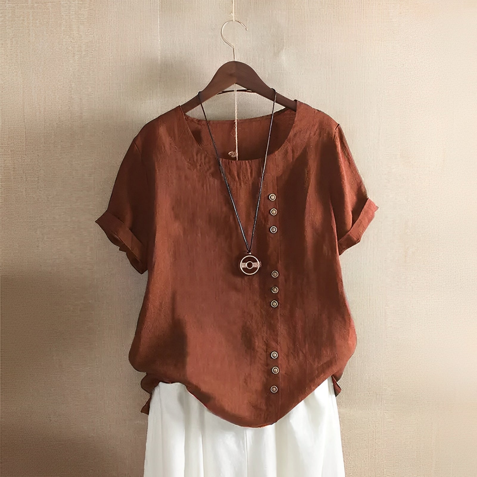 Clare - lockere Kurzarmbluse mit Rundhalsausschnitt