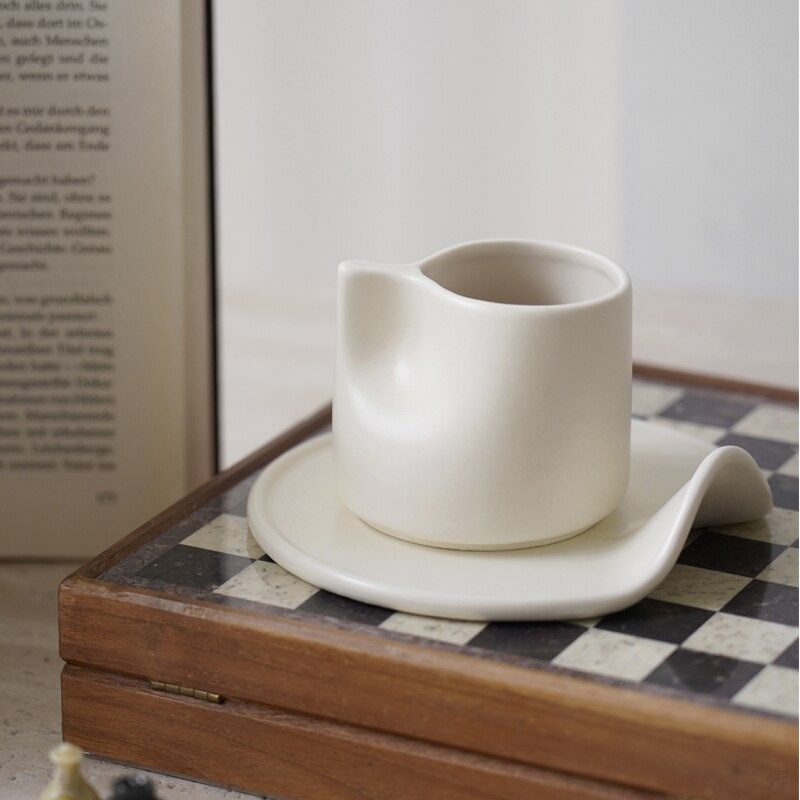 Erhältlich in weiß und beige, kombiniert der Cova Becher den Henkel mit dem Becher selbst und schafft so einen einzigartigen und markanten Look. Der Becher enthält auch einen Designer-Teller, was ihn zu einem kompletten Set macht, das perfekt für jeden Morgenkaffee oder Tee ist.