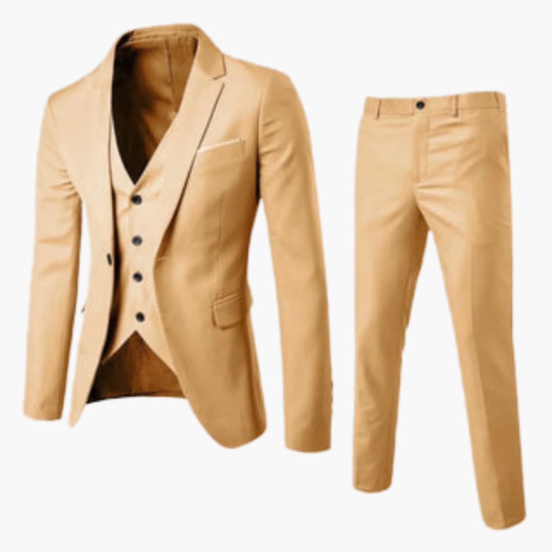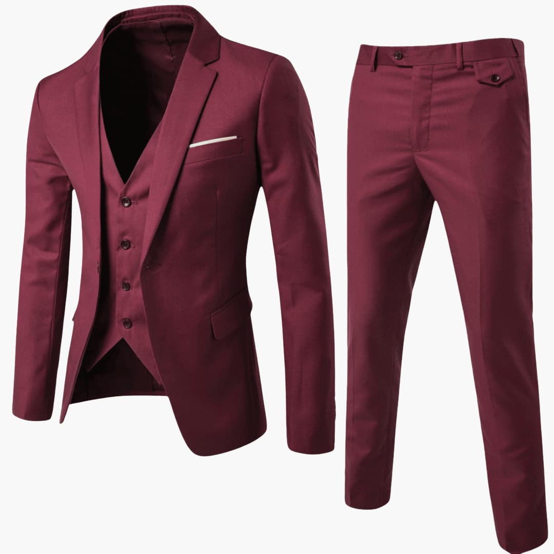 Dieser dreiteilige Anzug für Herren besteht aus einem Sakko, einer Weste und einer Hose, die farblich und stilistisch aufeinander abgestimmt sind. Das Set ist für formelle und festliche Anlässe konzipiert und überzeugt durch eine schlanke Passform, dezente Details und ein strukturiertes Erscheinungsbild. Geeignet für Männer, die ein gepflegtes Outfit für besondere Gelegenheiten suchen.