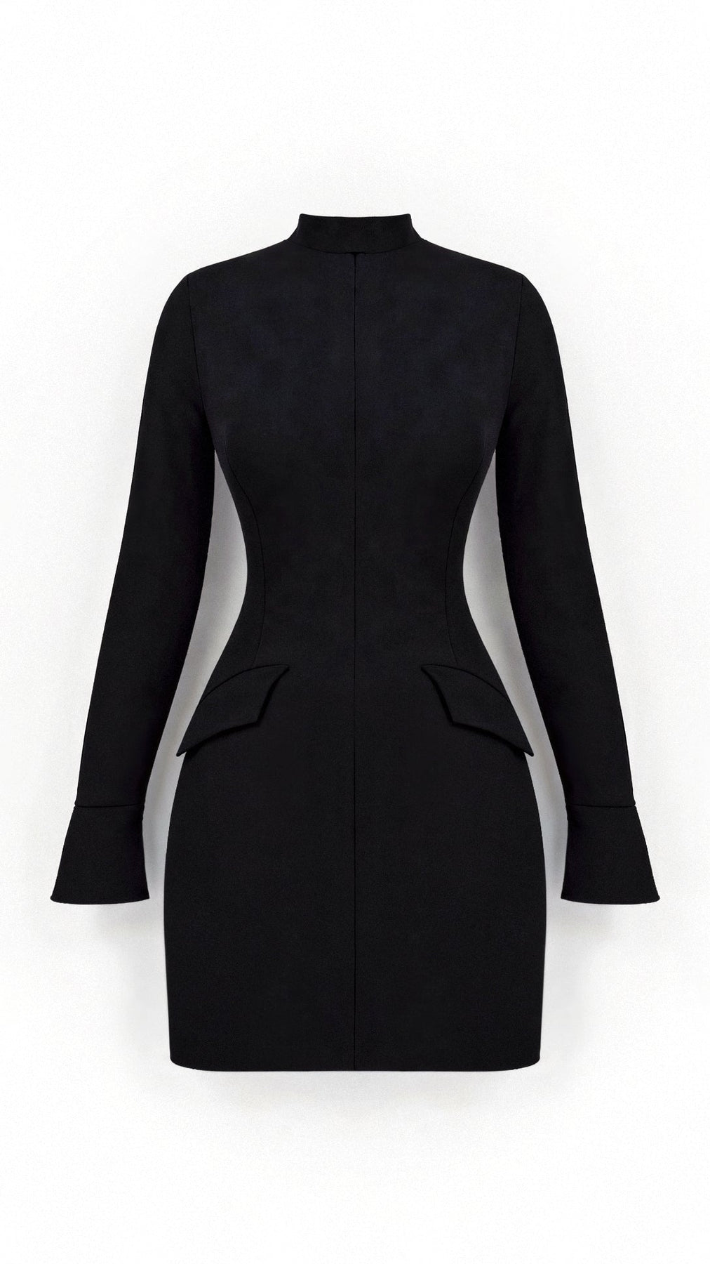 Erleben Sie souveräne Eleganz mit diesem perfekt geschnittenen "Kleinen Schwarzen", das Professionalität und Stil meisterhaft vereint. Der figurbetonte Etui-Schnitt aus einem hochwertigen, elastischen Stoff umschmeichelt Ihre Figur und sorgt für Tragekomfort den ganzen Tag über. Der elegante Stehkragen und die langen Ärmel verleihen dem Kleid eine seriöse und zugleich hochmodische Note. Das absolute Highlight sind die raffinierten Schößchen-Details an der Taille: Sie betonen nicht nur die Taille auf schmeichelhafte Weise, sondern schaffen auch eine faszinierende und feminine Sanduhr-Silhouette. Ob für einen wichtigen Geschäftstermin, eine Konferenz oder das elegante Abendessen danach – mit diesem Kleid investieren Sie in ein zeitloses Basic, das Selbstbewusstsein und Klasse ausstrahlt.