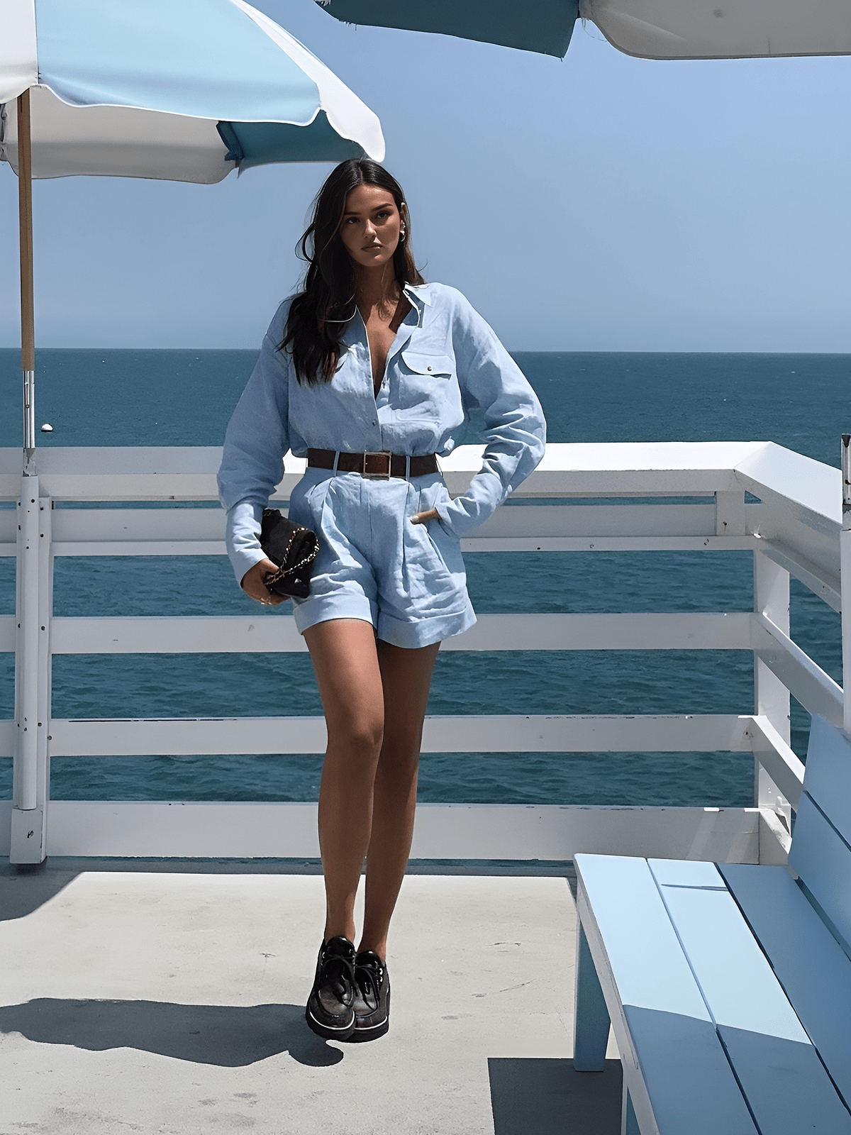 Gabriele | Leinen-Zweiteiler mit Hemd & Shorts