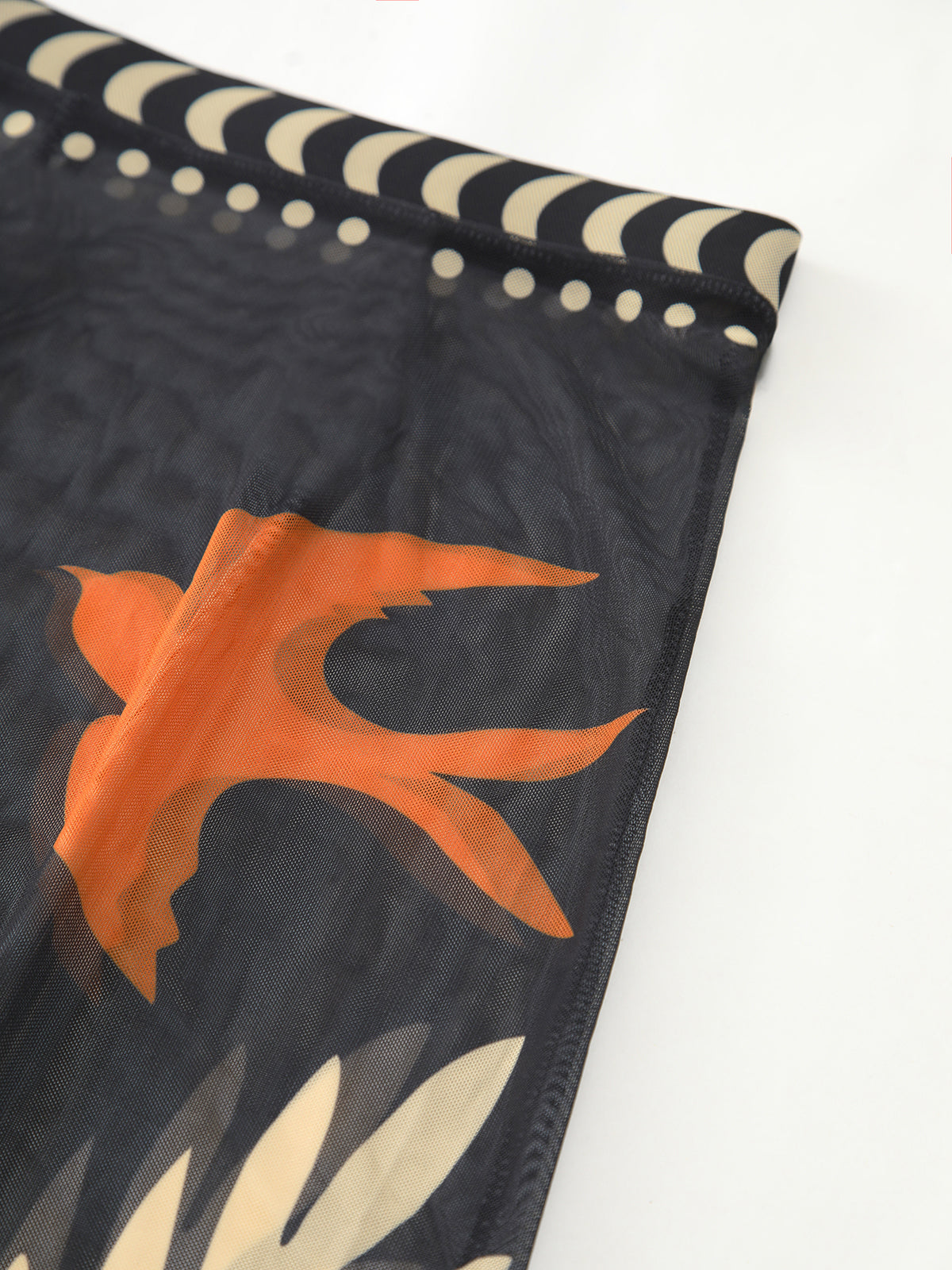 Maxi Mesh Rock mit Vogelprint – Leichtes Strand-Cover-Up