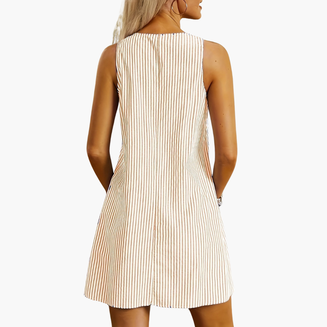 Natalie | Ärmelloses Gestreiftes Kleid mit Taschen