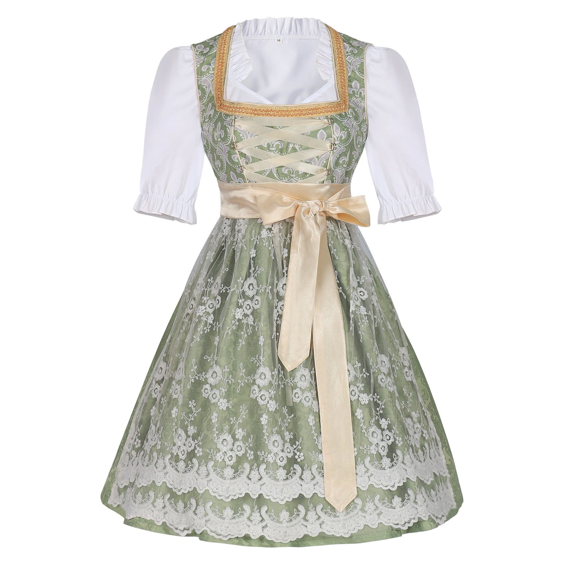 Oktoberfest Dirndl Kleid für Damen – Grünes Trachtenkleid mit Schürze & Bluse