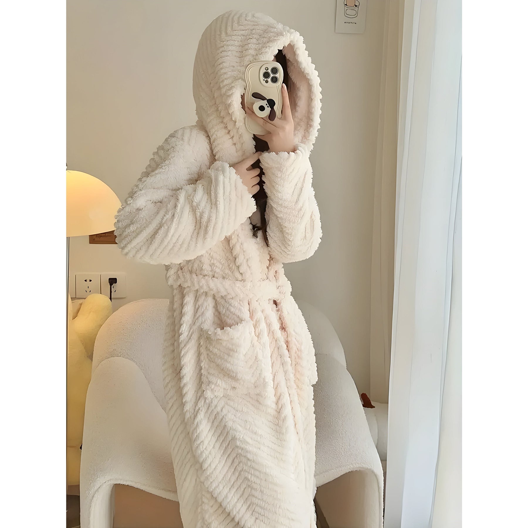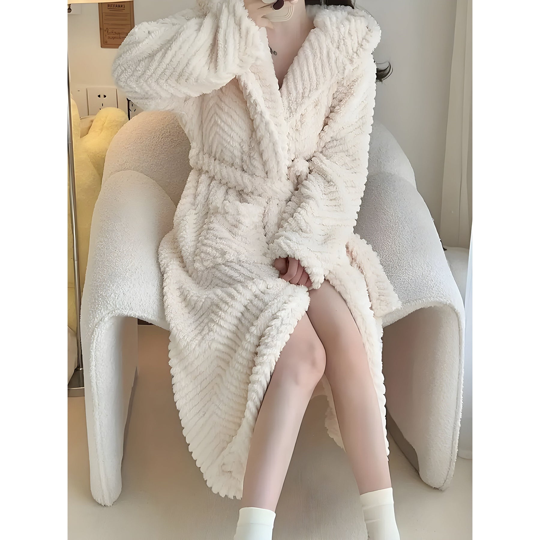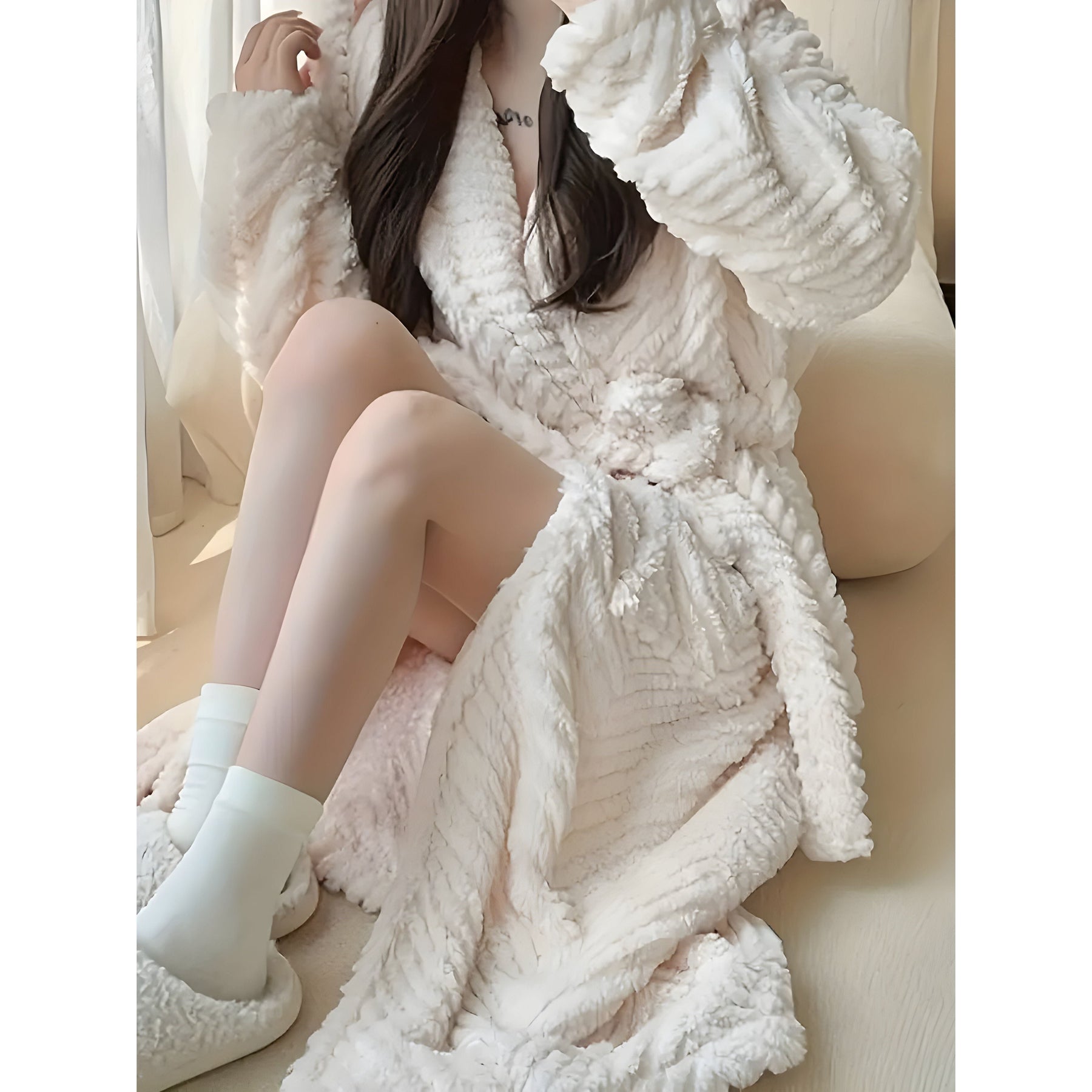 Pollina Robe - Modischer, Verdickter Langarm-Bademantel aus Korallensamt