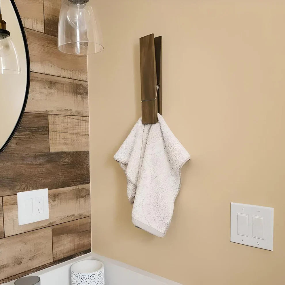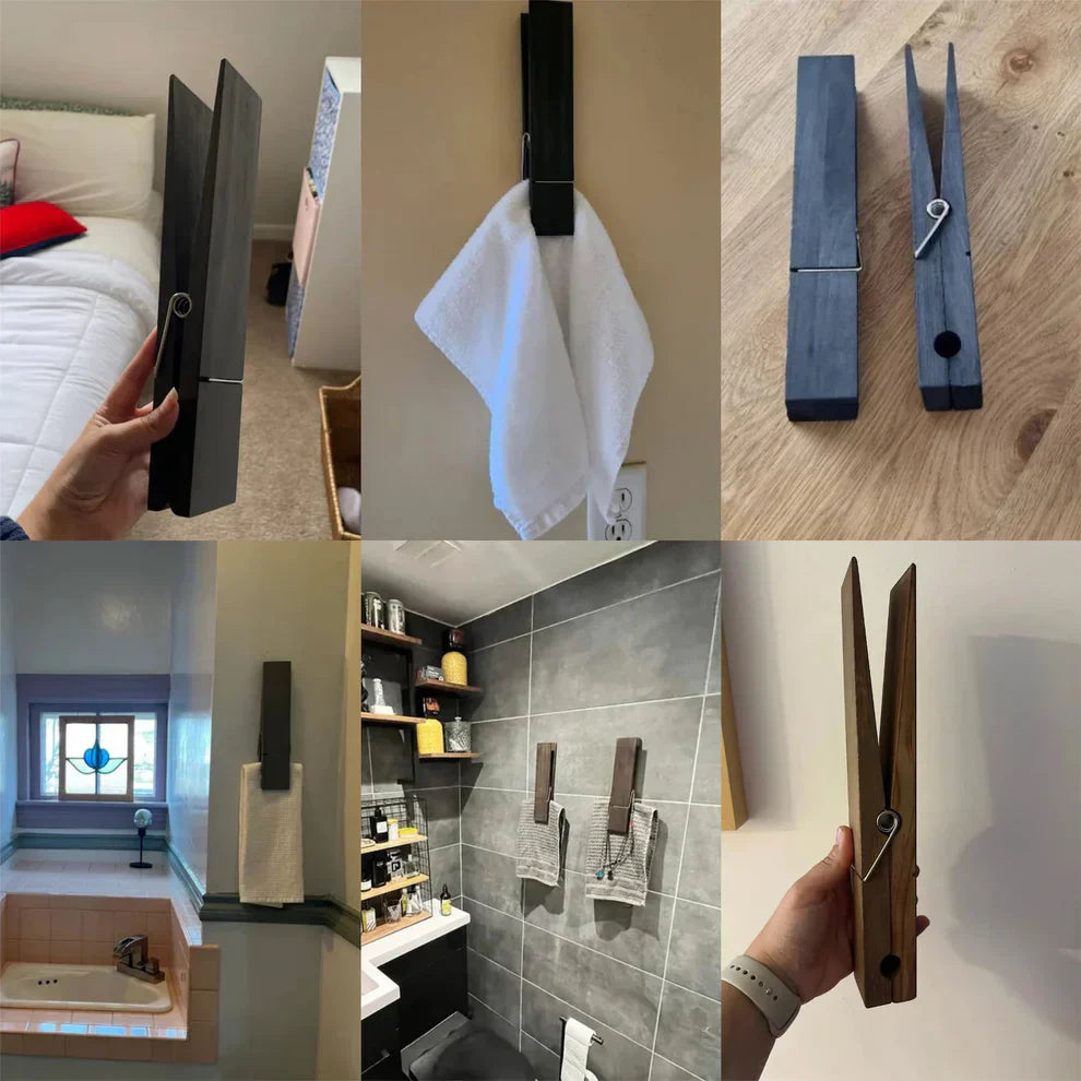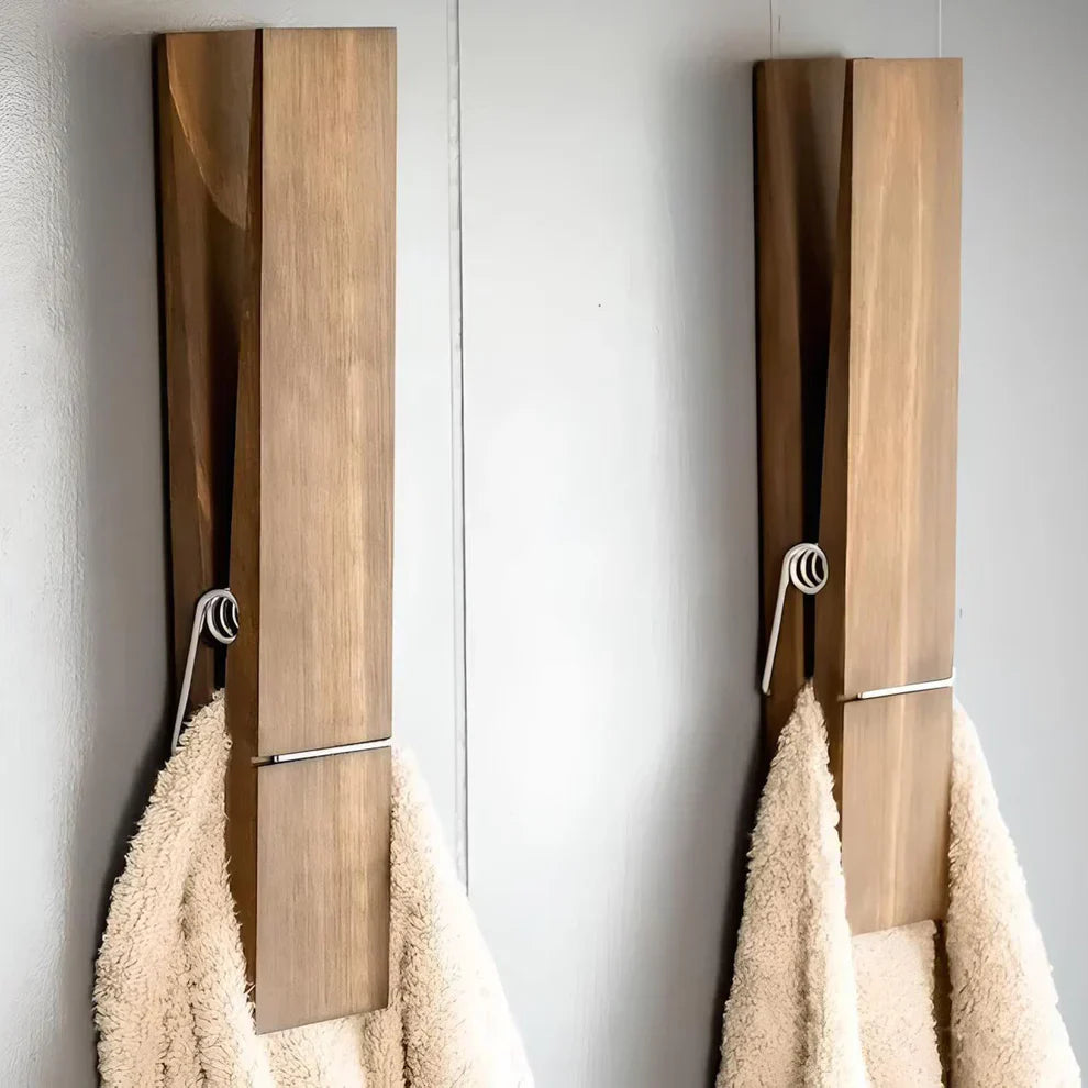 Haben Sie genug von langweiligem Badezimmer- und Wäscheraum-Design? Stellen Sie sich vor, Sie fügen einen Hauch von Landhaus-Eleganz hinzu, der nicht nur organisiert, sondern auch Ihren Raum verschönert. Wir präsentieren unseren Jumbo-Wäscheklammer-Handtuchhalter für das Badezimmer – eine perfekte Kombination aus Funktionalität und rustikalem Charme!