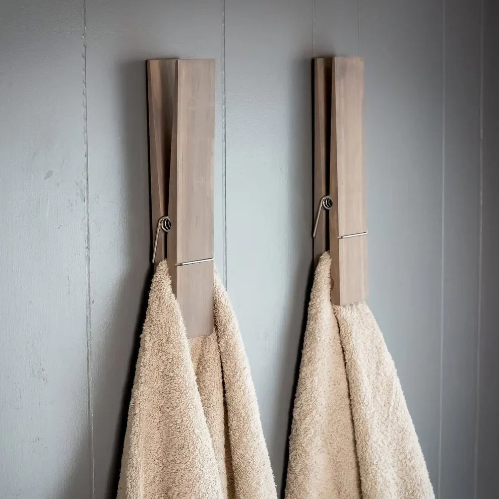 Unsere Jumbo-Wäscheklammern sind in der Größe 12" - 30 cm erhältlich. Sorgfältig gestaltet, um dieses nostalgische Landhausgefühl direkt in Ihr Zuhause zu bringen. Jedes Stück ist so konzipiert, dass es Ihre Handtücher und Bettwäsche sicher hält und gleichzeitig ein einzigartiges dekoratives Element an Ihre Wände bringt.