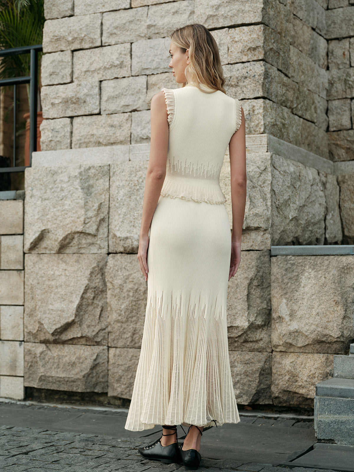 Rippstrick Crop Top mit Rüschen – Beige – Sommer Damen Oberteil