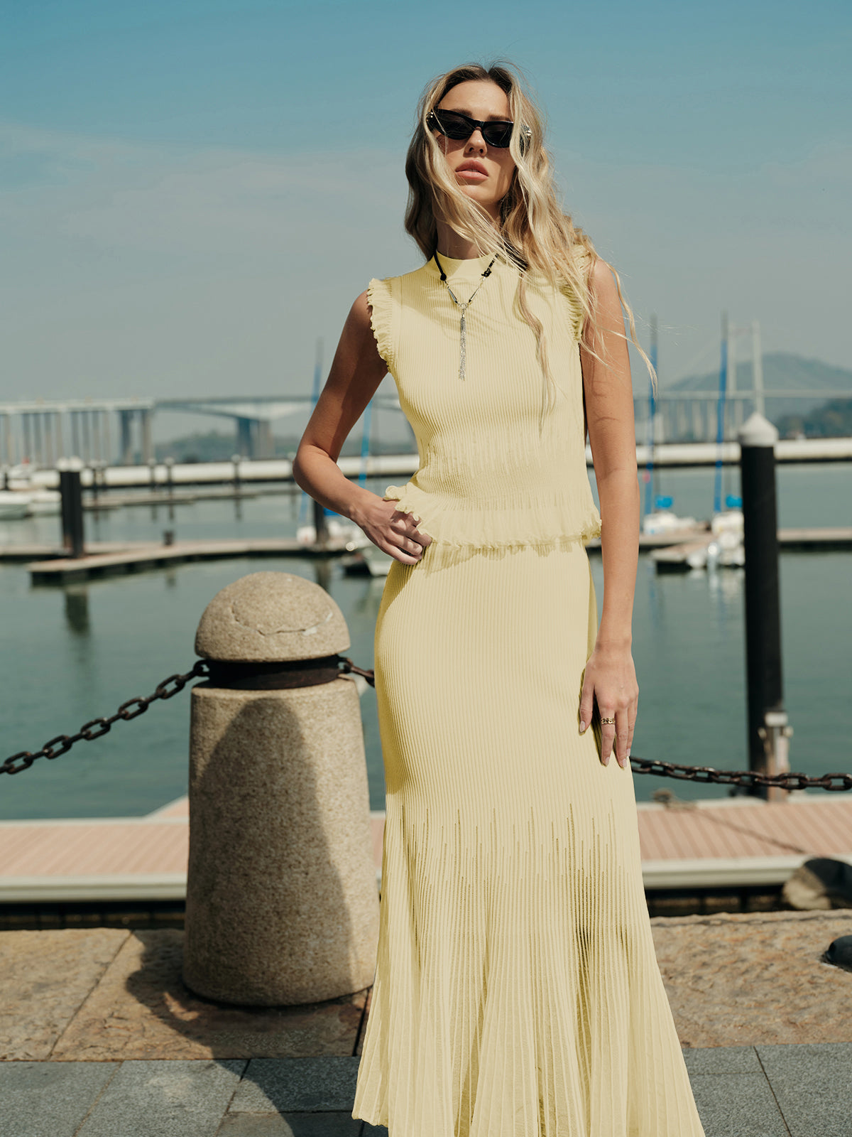 Entdecken Sie das perfekte Oberteil für stilbewusste Frauen: Unser Rippstrick Crop Top mit Rüschen in elegantem Beige vereint Komfort und modisches Design. Die feinen Rüschenabschlüsse verleihen dem Top eine feminine Note, während der hochwertige Viskose-Nylon-Mix für ein angenehmes Tragegefühl sorgt. Ideal für warme Tage oder als schickes Layering-Piece.