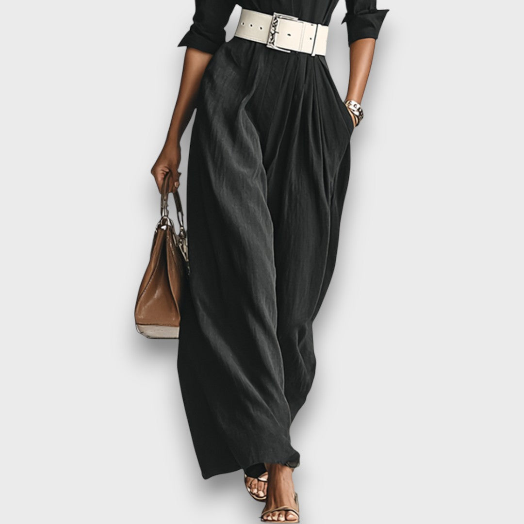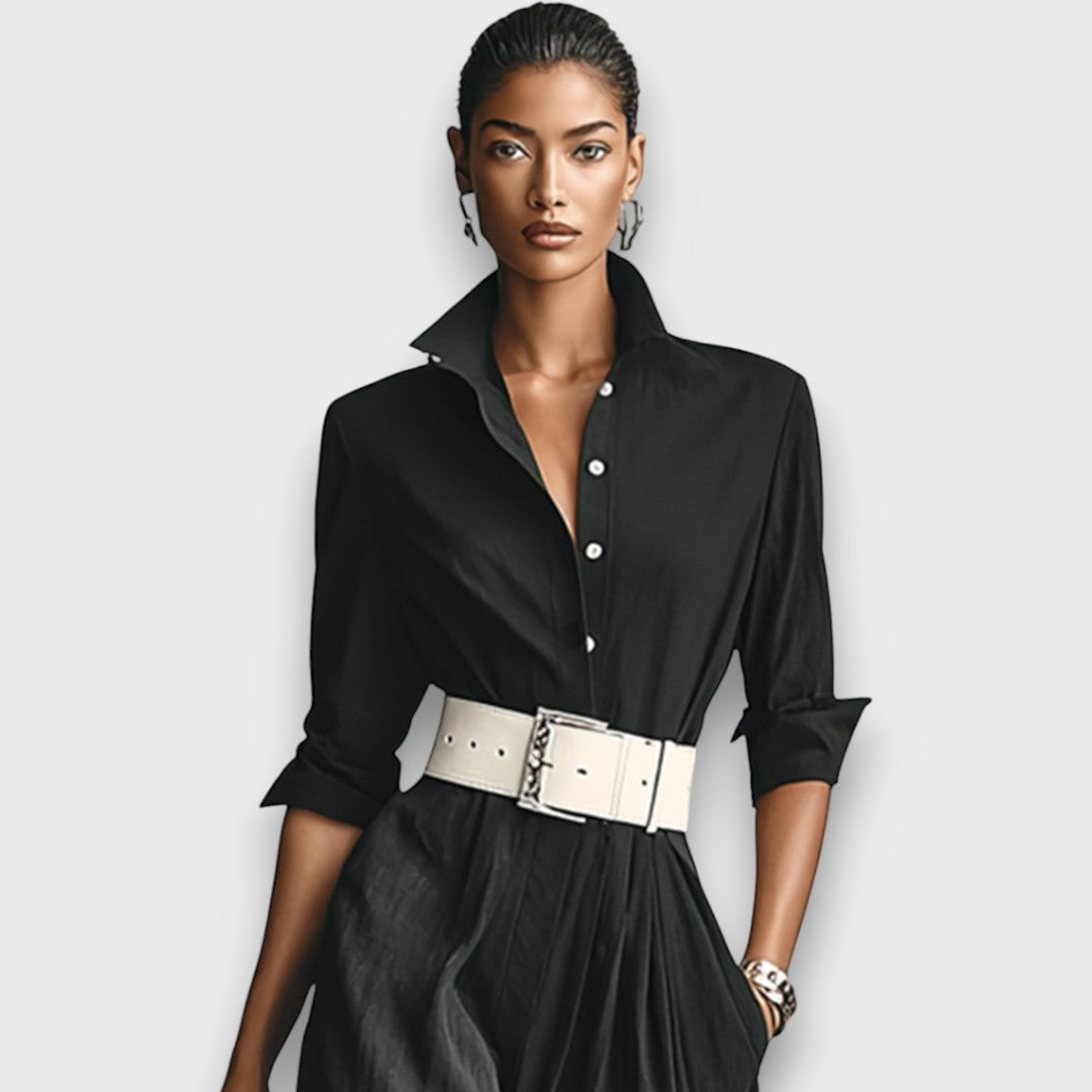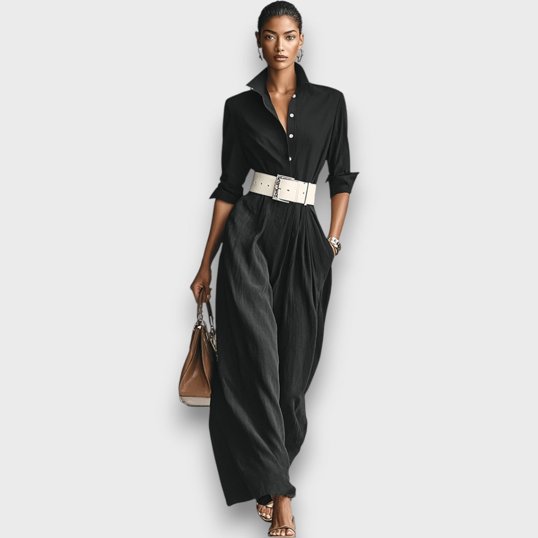 Serenya – Langer Einteiler mit Reverskragen und Taillengürtel