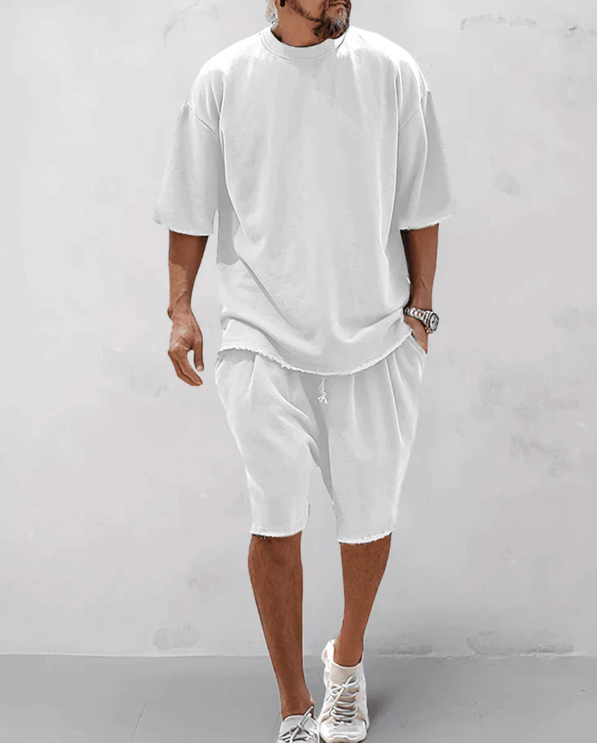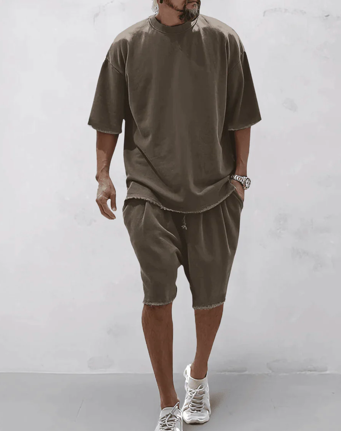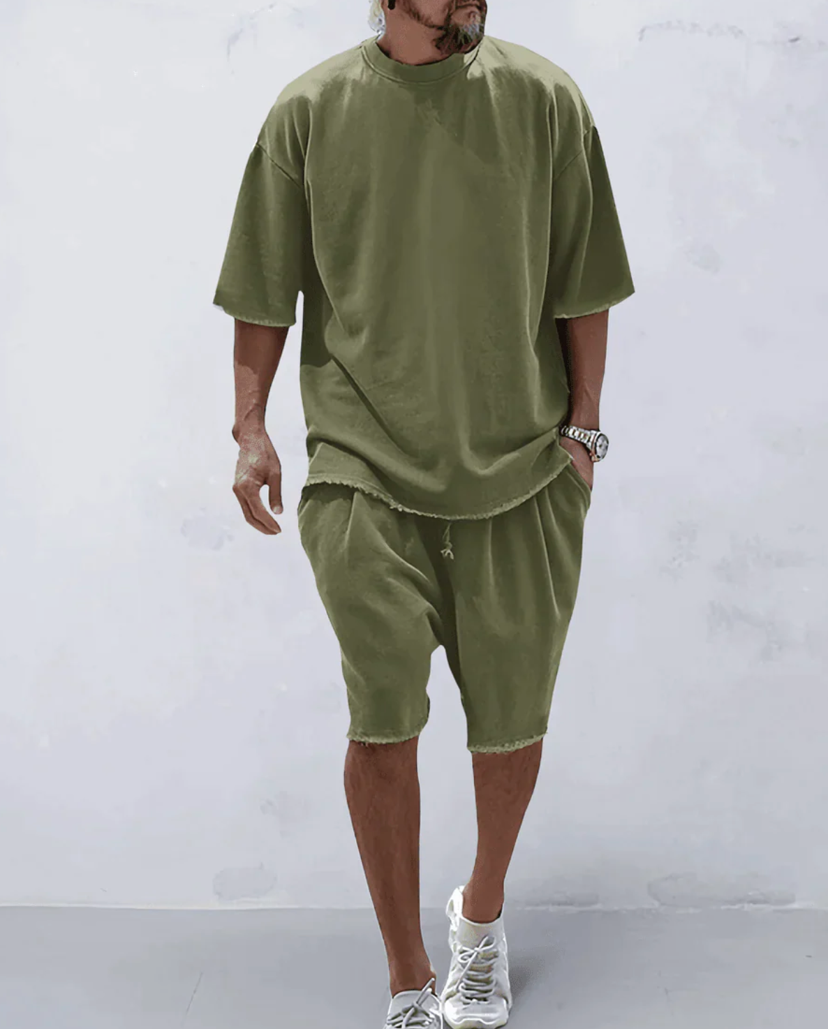 Dieses Sommerset für Männer aus Baumwolle ist perfekt für warme Tage. Es besteht aus einem bequemen T-Shirt und modischen Shorts. Aus hochwertiger Baumwolle gefertigt, ist das Set leicht und atmungsaktiv und hält Sie den ganzen Sommer über kühl und modisch.